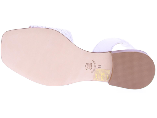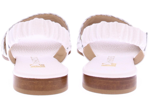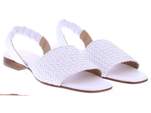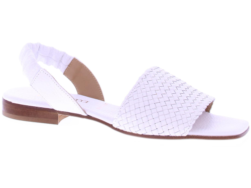Wit leren dames sandaal van Pascucci. Deze sandaal heeft een band over de voet van lichtgevlochten leer. De hielband is bekleed met een zacht en soepel elastiek zodat deze goed aansluit. Het comfortabele voetbed is van leer en de hak heeft een hoogte van 2 cm.