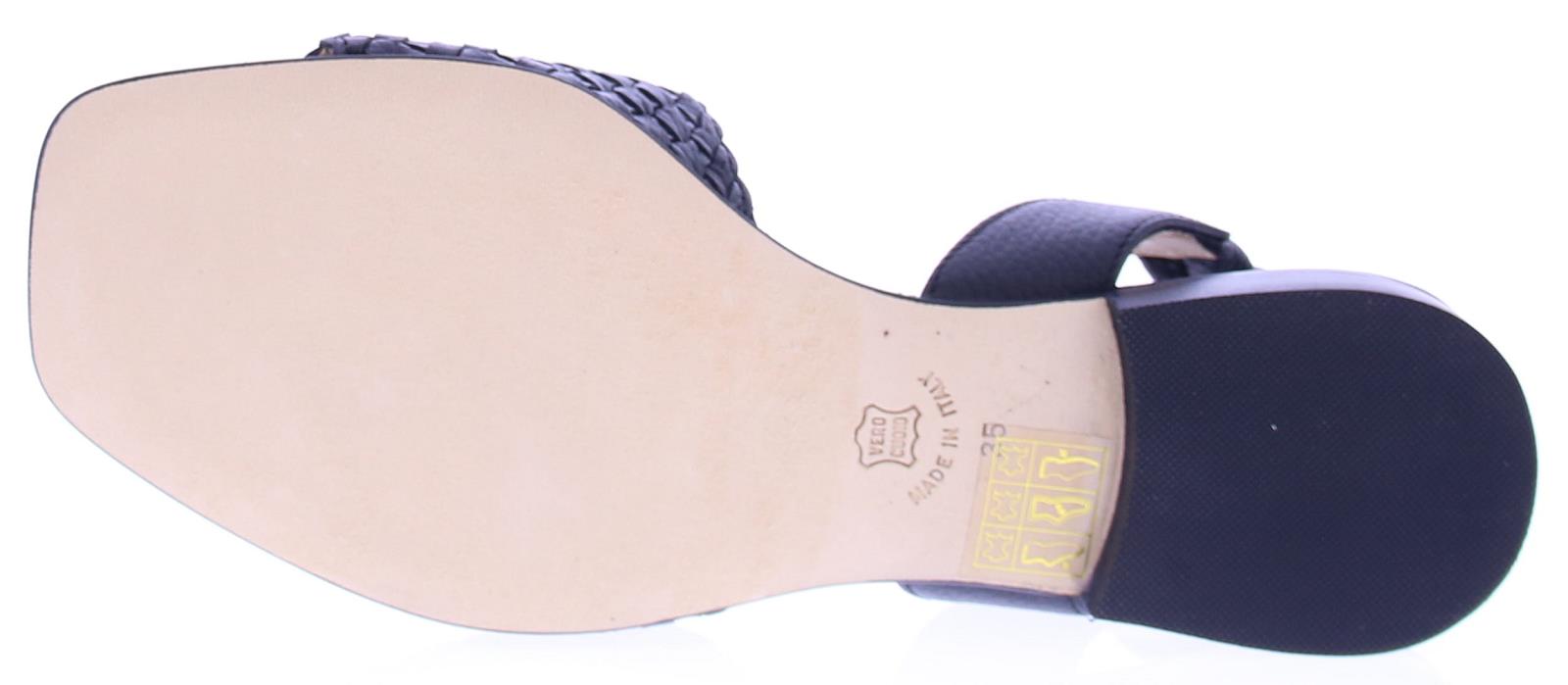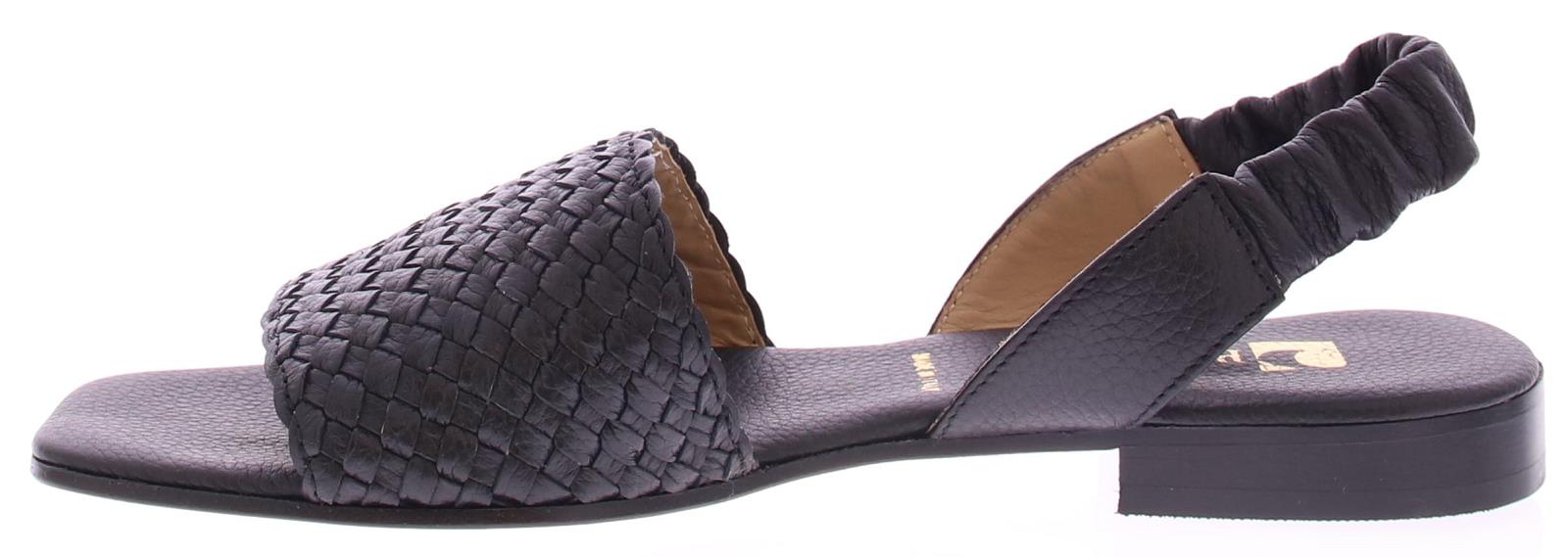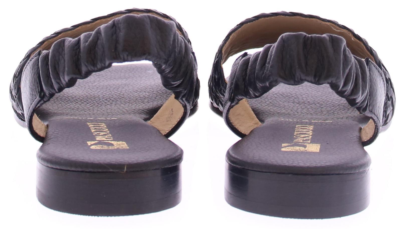 Zwart leren dames sandaal van Pascucci. Deze sandaal heeft een band over de voet van lichtgevlochten leer. De hielband is bekleed met een zacht en soepel elastiek zodat deze goed aansluit. Het comfortabele voetbed is van leer en de hak heeft een hoogte van 2 cm.