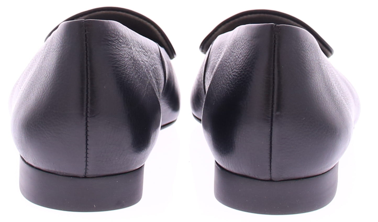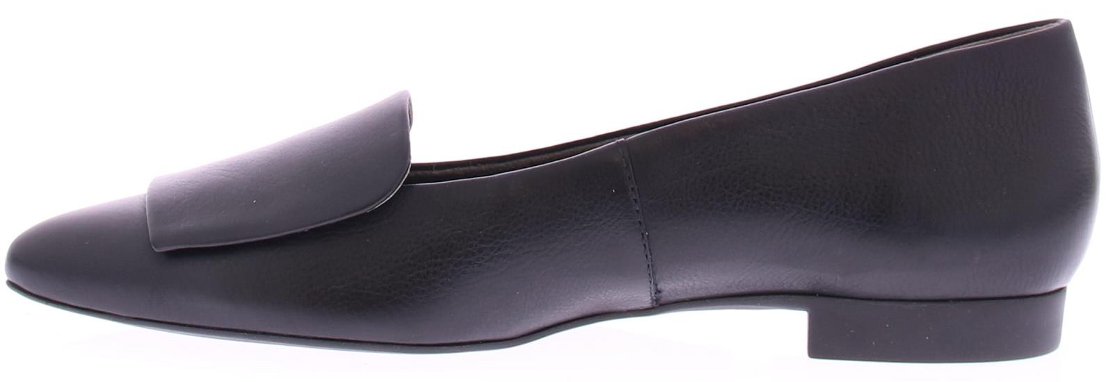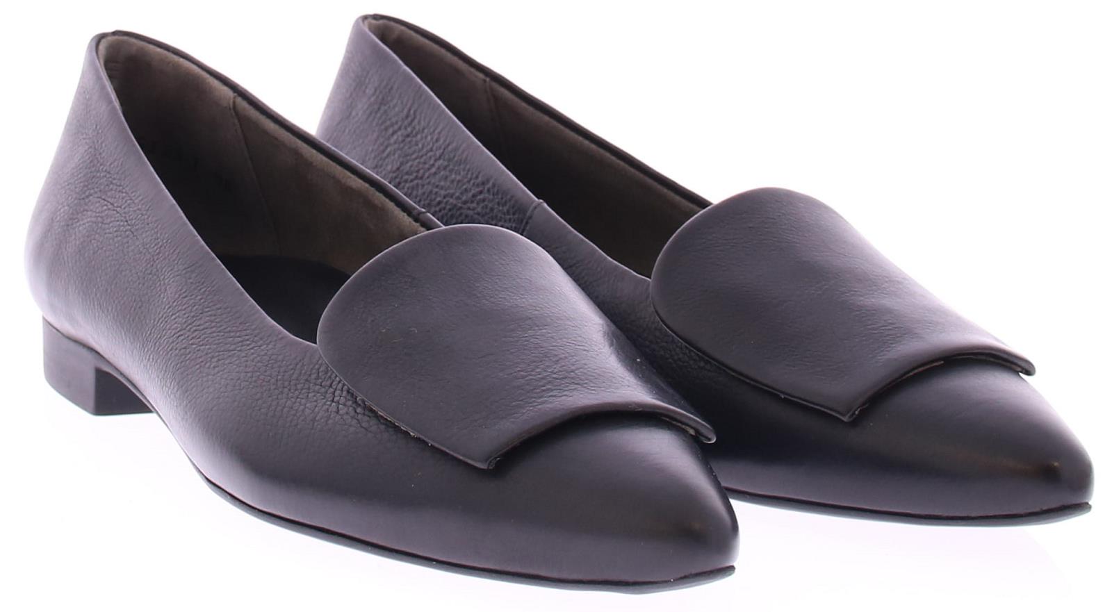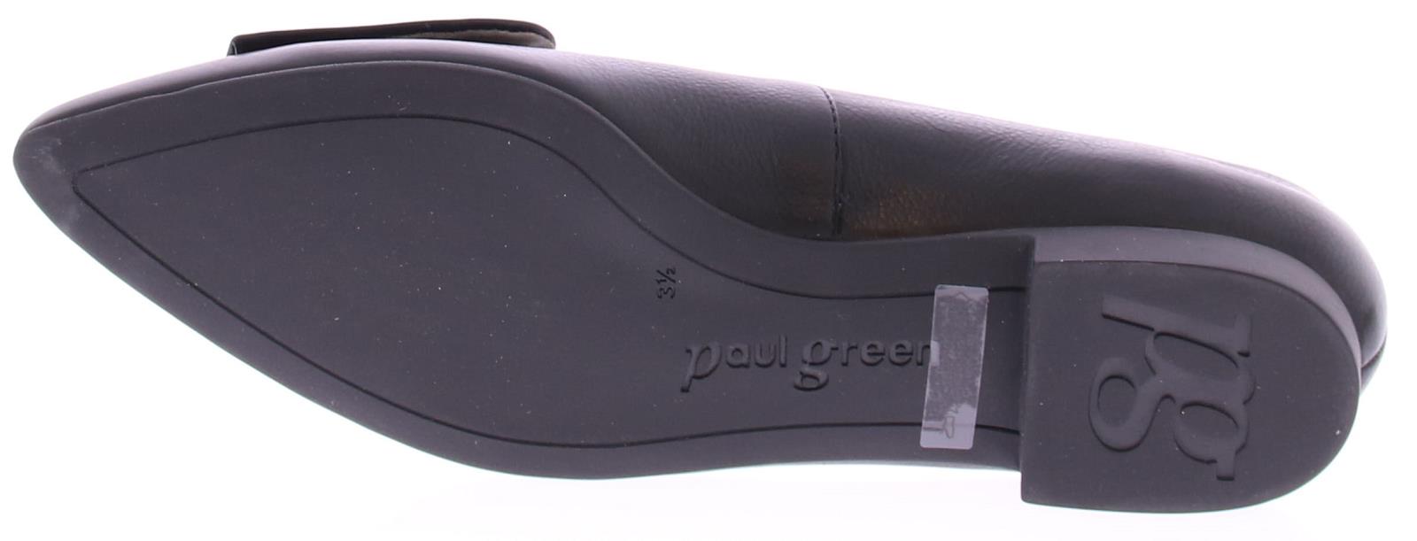 Zwart leren dames ballerina van Paul Green. Deze ballerina heeft een iets spitsere neus met een klep in dezelfde kleur over de voorvoet en een lage hak van 1 cm. De voering is gemaakt van leer en heeft een suede hielstuk voor extra draagcomfort. Combineer deze pump onder verschillende jurkjes of met een nette pantalon.