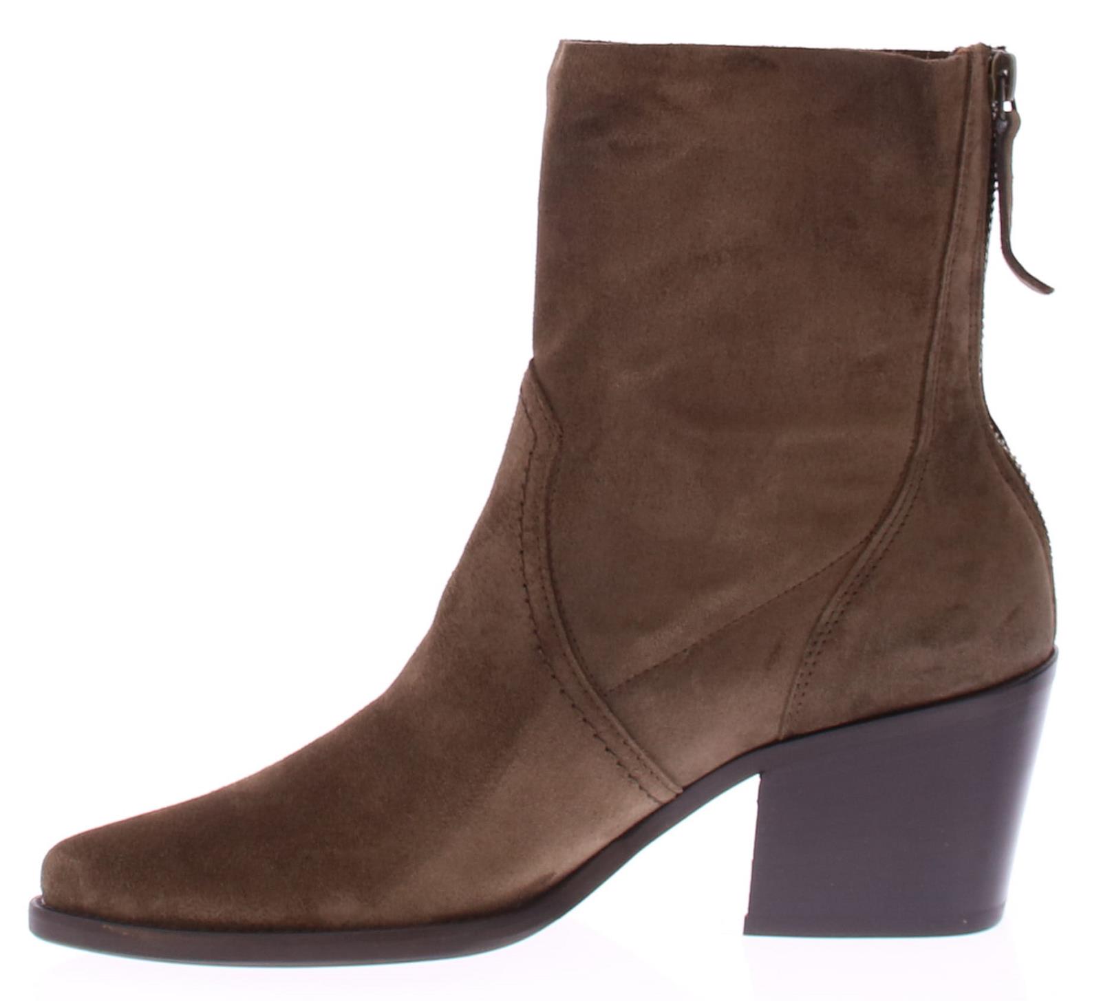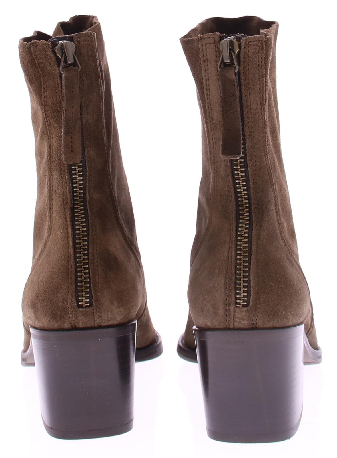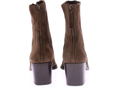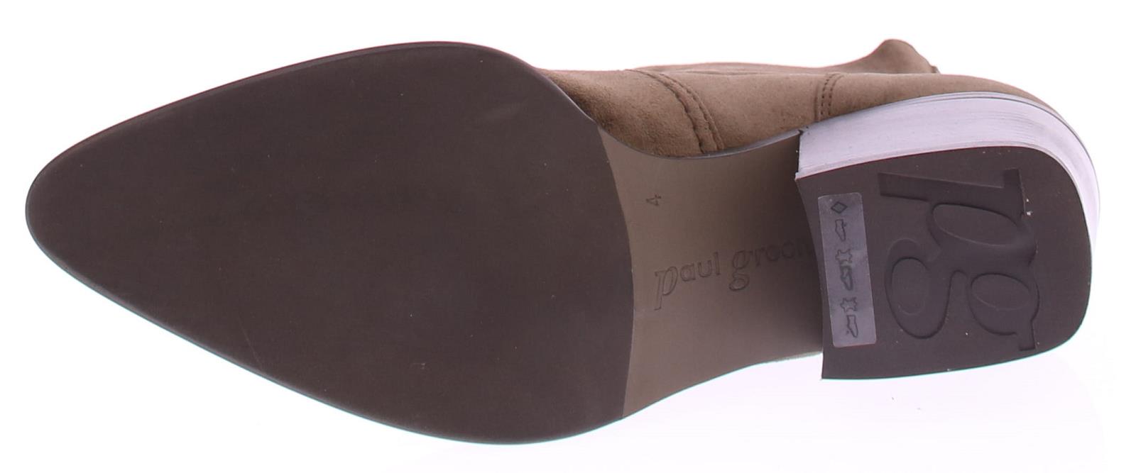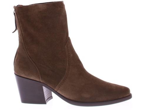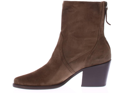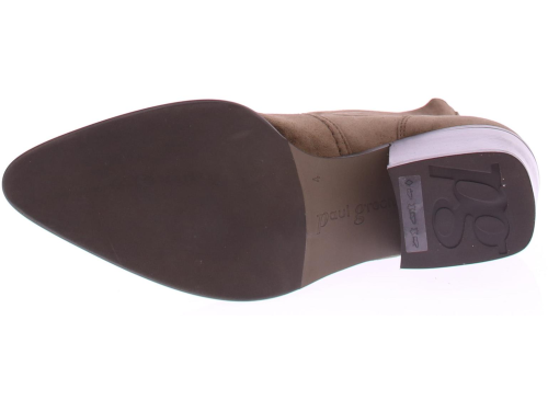 Taupe suede dames korte laars van Paul Green. Deze korte laars heeft een spitse neus met leuke stiksels rondom de voet. De rits bevind zich aan de achterkant. De blokhak heeft een hoogte van 5 cm en de zool is van rubber.