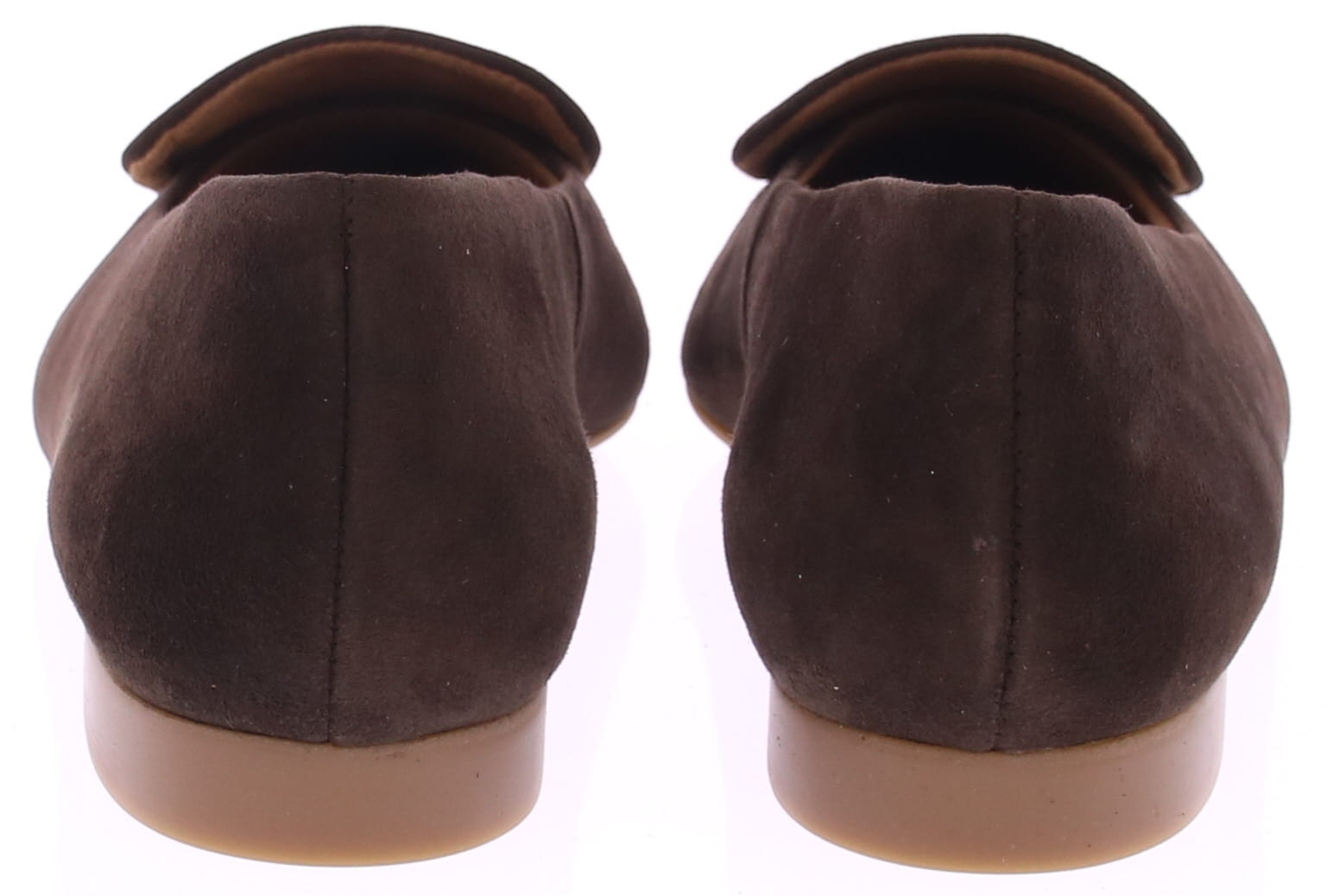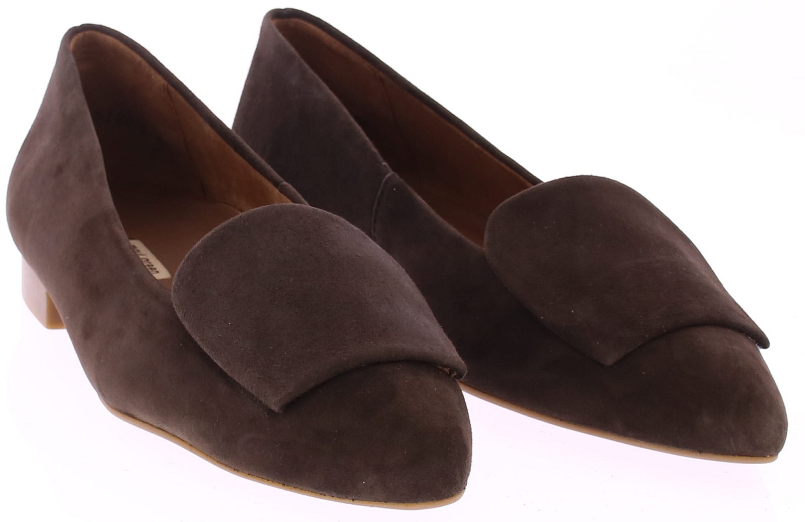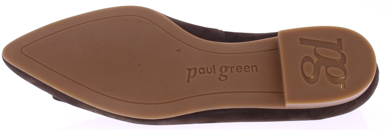 Deze ballerina van Paul Green (model 3792.188) is uitgevoerd in soepel donkerbruin suède en staat garant voor comfort en elegantie. De ton-sur-ton garnering op het voorblad geeft de schoen een verfijnde uitstraling. De ballerina heeft een leren voering en een soepele rubberen zool.