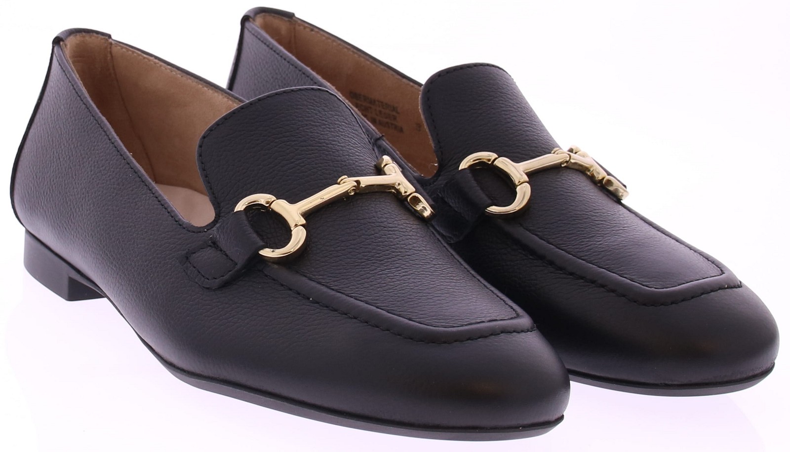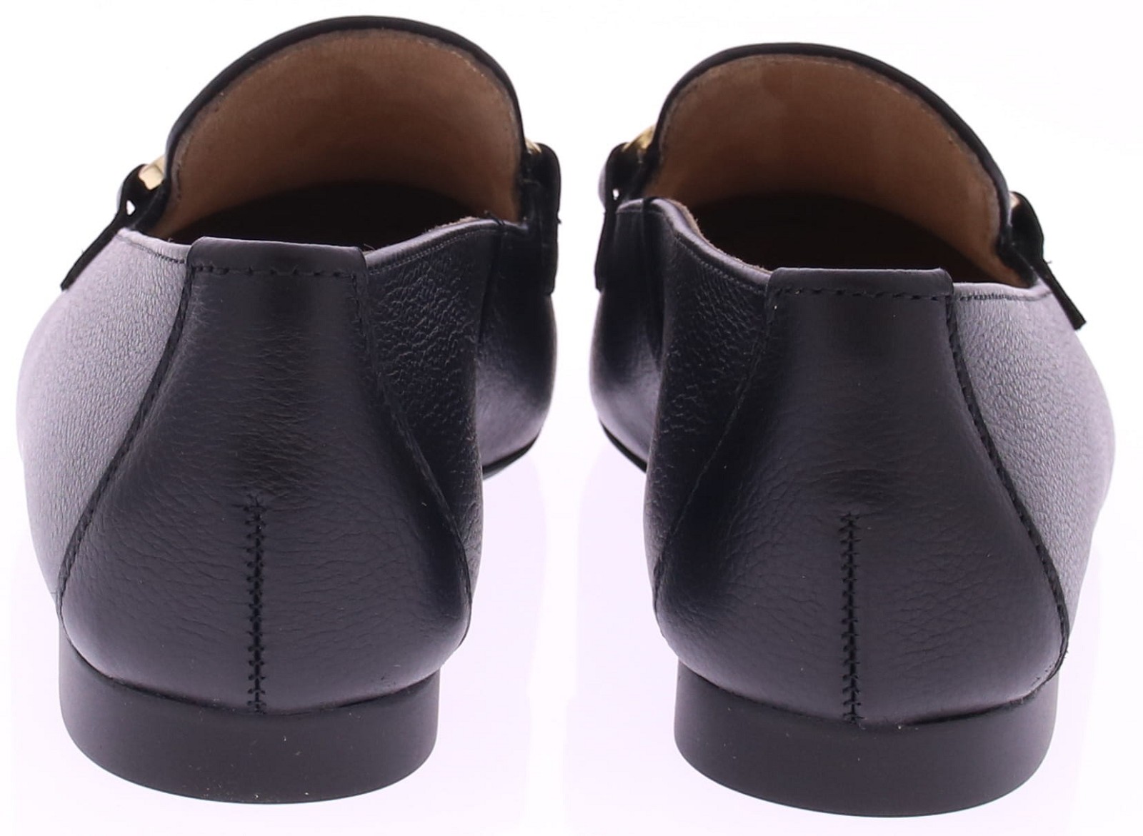Zwart leren dames instapper van Paul Green. Deze zwarte leren damesinstapper van Paul Green straalt tijdloze elegantie uit. Het verfijnde ontwerp met een gouden bit op de wreef geeft de schoen een luxe uitstraling, terwijl het soepele leer zorgt voor een perfecte pasvorm. De dunne rubberen zool met de bekende Comfort Fit biedt ondersteuning en comfort bij iedere stap. Of je nu naar je werk gaat, een formele gelegenheid hebt of gewoon een dagje uit wilt, deze loafer past bij elke outfit en elke gelegenheid. De combinatie van stijl, kwaliteit en draaggemak maakt deze instapper tot een echte klassieker in je garderobe.