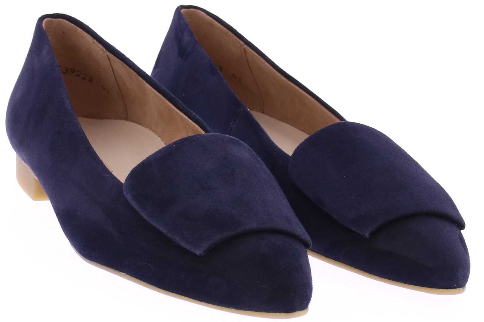 Donkerblauw suède dames ballerina's van Paul Green. Deze elegante ballerina heeft een ton-sur-ton garnering op het voorblad en is uitgevoerd met een "supersoft" leren voering en soepele rubberen zool. De combinatie van stijl en comfort maakt dit model ideaal voor dagelijks gebruik en diverse gelegenheden. Kom passen in het onze winkel in Den Haag of bestel nu online. Voor 15:30 uur besteld, zelfde dag verzonden.