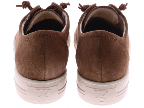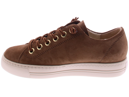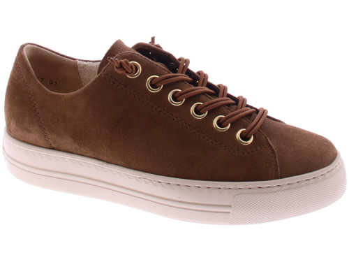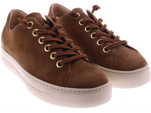 Middenbruin suède dames sneakers van Paul Green. Deze sneaker heeft een beige plateauzool van 2 cm hoog, wat zorgt voor een subtiel contrast. De elastische veters maken de instap gemakkelijk en zorgen voor een comfortabele pasvorm. Gemaakt van zacht suède en afgewerkt met de kenmerkende kwaliteit van Paul Green, perfect voor dagelijks gebruik met een stijlvolle twist.