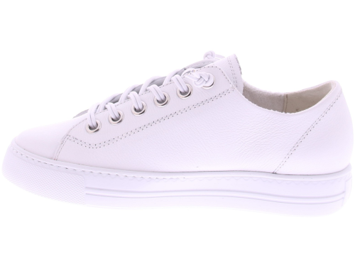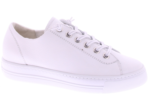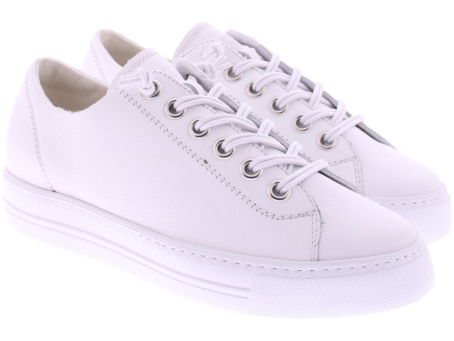 Wit leren dames sneakers van Paul Green. Deze sneaker heeft een plateauzool van 2 cm hoog. De elastische veters maken de instap gemakkelijk en zorgen voor een comfortabele pasvorm. Gemaakt van zacht suède en afgewerkt met de kenmerkende kwaliteit van Paul Green, perfect voor dagelijks gebruik.