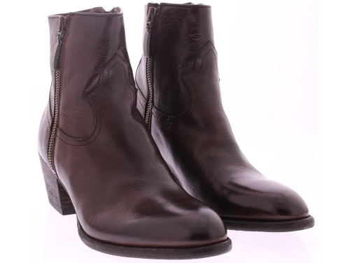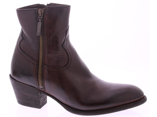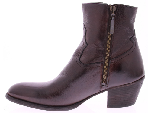 Donkerbruin buffelleren dames korte laars van Paul Silence. Deze enkellaars is uitgevoerd ineen mooie diepe tint donkerbruin buffelleer. De luxe maakwijze is zichtbaar in de verfijnde afwerking en het hoogwaardige materiaalgebruik. Met twee ritssluitingen – één aan elke kant – is dit model niet alleen stijlvol, maar ook praktisch in het dragen. De hak van 5 cm biedt precies de juiste hoogte voor een vrouwelijke look, terwijl je comfortabel blijft lopen. Een tijdloos laarsje dat vakmanschap en draagcomfort perfect combineert — ideaal voor dagelijks gebruik of een gekledere gelegenheid.