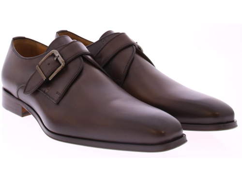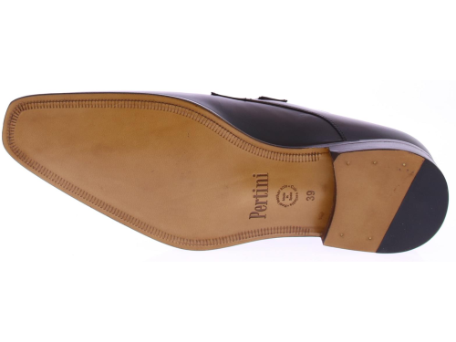 Heren gespschoen van Pertini in bruin kalfsleer op een leren zool. De schoen is geheel leer gevoerd en heeft een goede pasvorm.