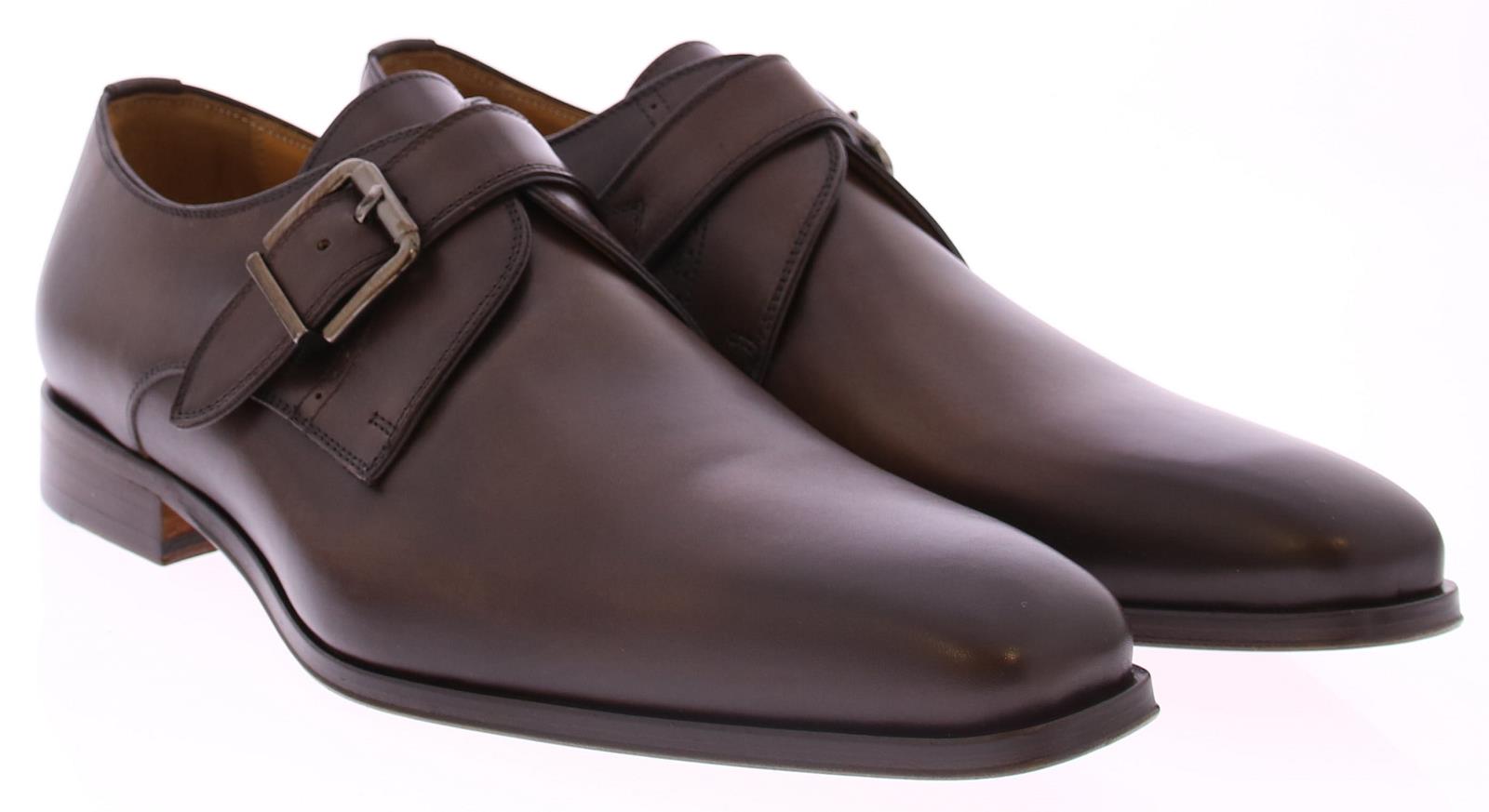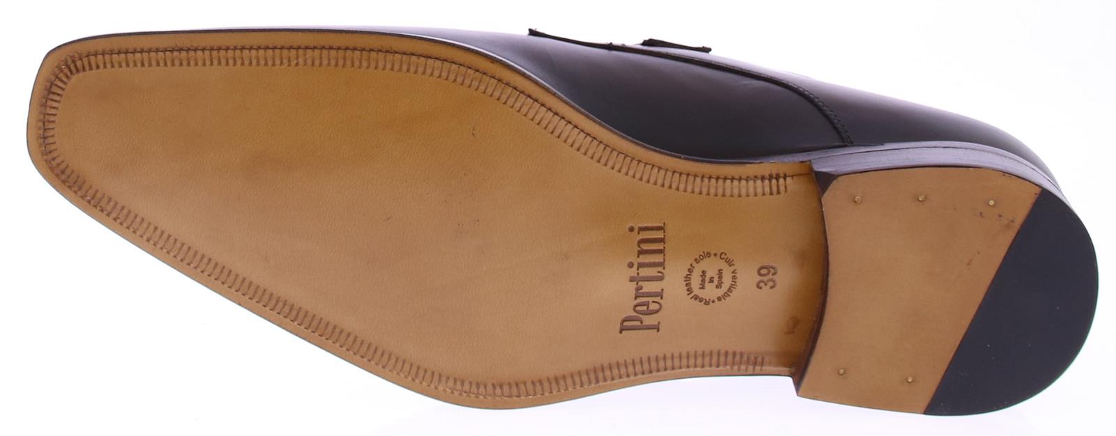 Heren gespschoen van Pertini in bruin kalfsleer op een leren zool. De schoen is geheel leer gevoerd en heeft een goede pasvorm.