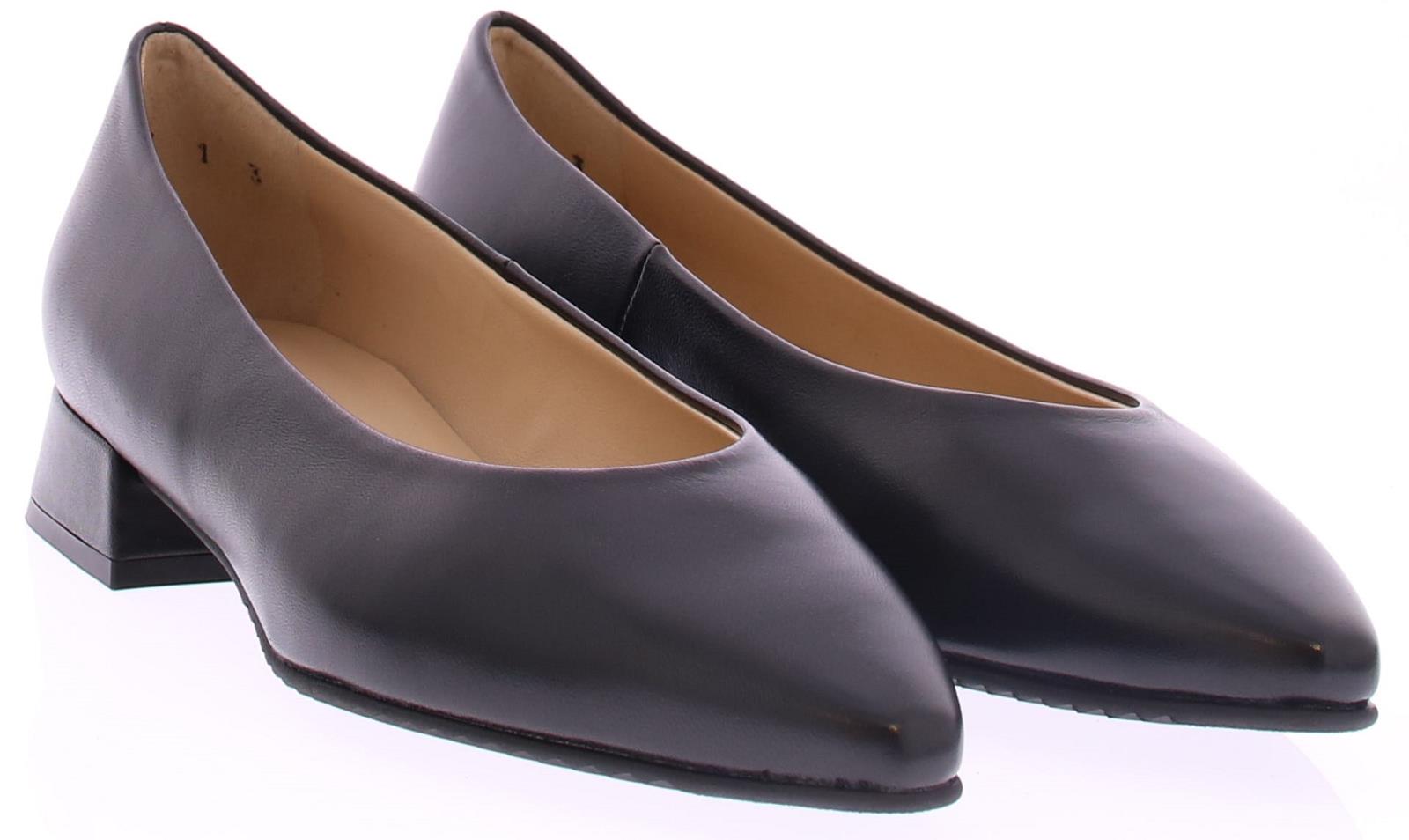 Zwarte leren dames pump van Peter Kaiser. Uitgevoerd op een comfortabele 2,5 cm hak en soepele dunne rubberen zool. Het leren voetbed is voorzien van een extra zacht laagje voor nog aangenamer gevoel. De ideale lage pump voor onder bijvoorbeeld een uniform of om dagelijks veel op te lopen.