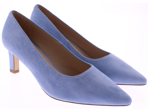 Lichtblauw suède dames pumps van Peter Kaiser. Deze elegante pump is uitgevoerd in suède en heeft een hakhoogte van 6 cm voor een vrouwelijke, comfortabele look. De spitse neus en perfecte belijning maken dit tijdloze model ideaal voor zowel zakelijke outfits als feestelijke gelegenheden. Ontdek ook de andere dames pumps van Peter Kaiser bij Klijsen.