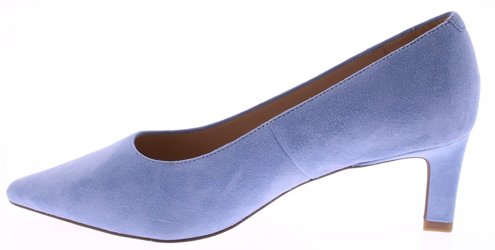 Lichtblauw suède dames pumps van Peter Kaiser. Deze elegante pump is uitgevoerd in suède en heeft een hakhoogte van 6 cm voor een vrouwelijke, comfortabele look. De spitse neus en perfecte belijning maken dit tijdloze model ideaal voor zowel zakelijke outfits als feestelijke gelegenheden. Ontdek ook de andere dames pumps van Peter Kaiser bij Klijsen.