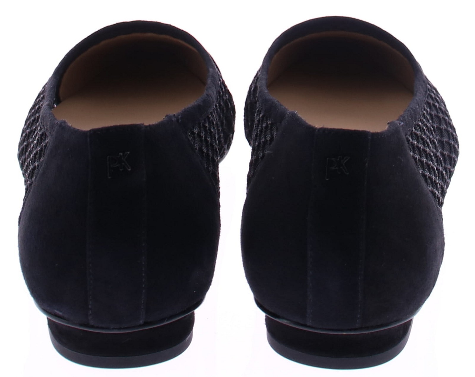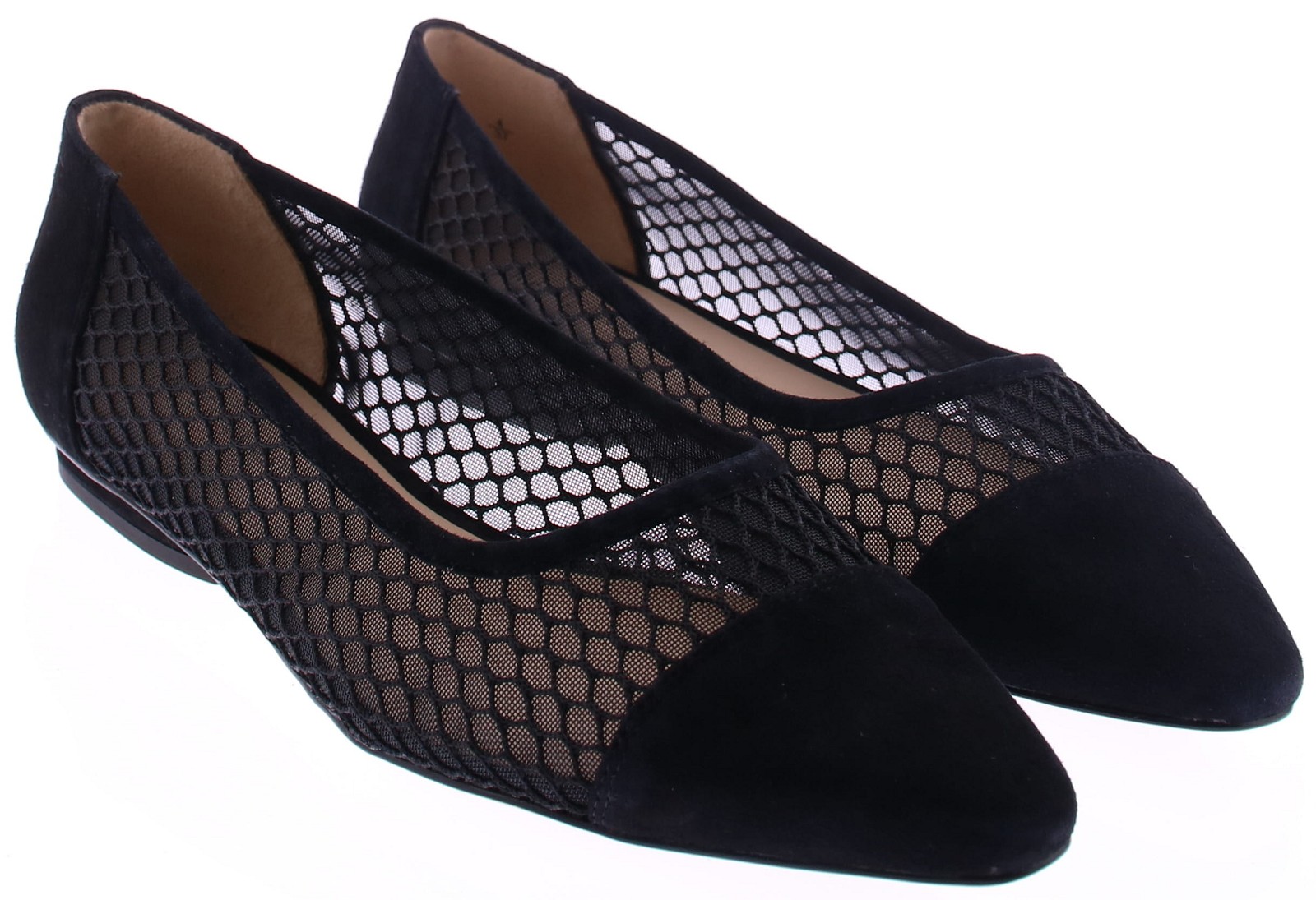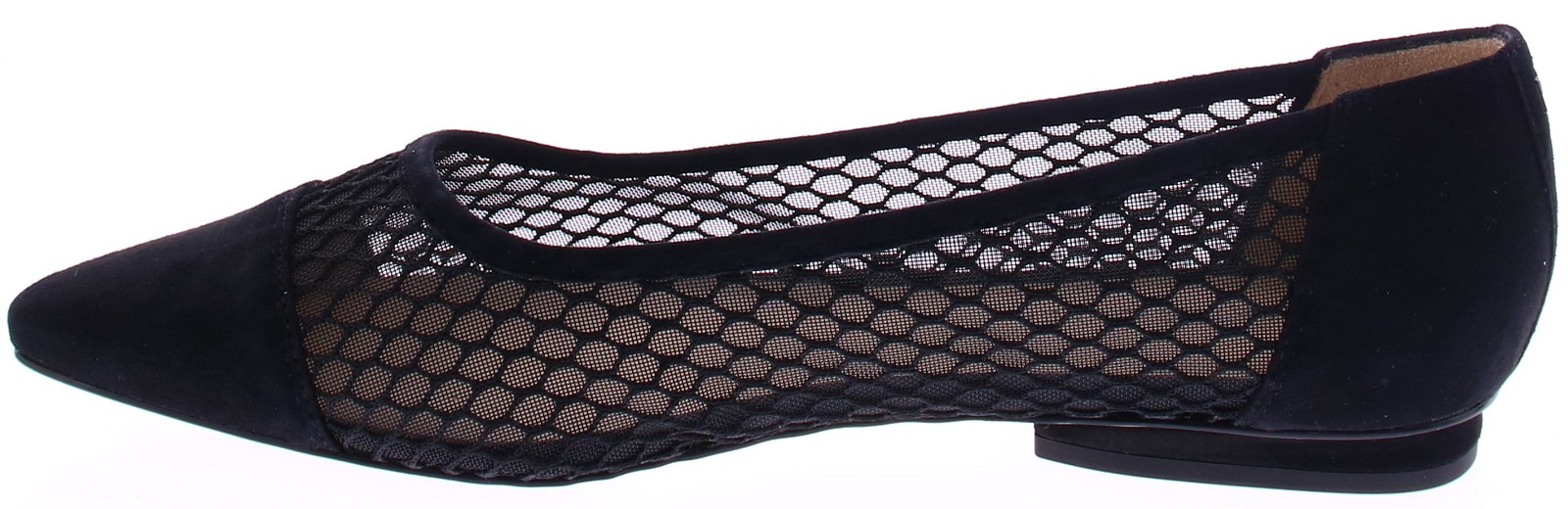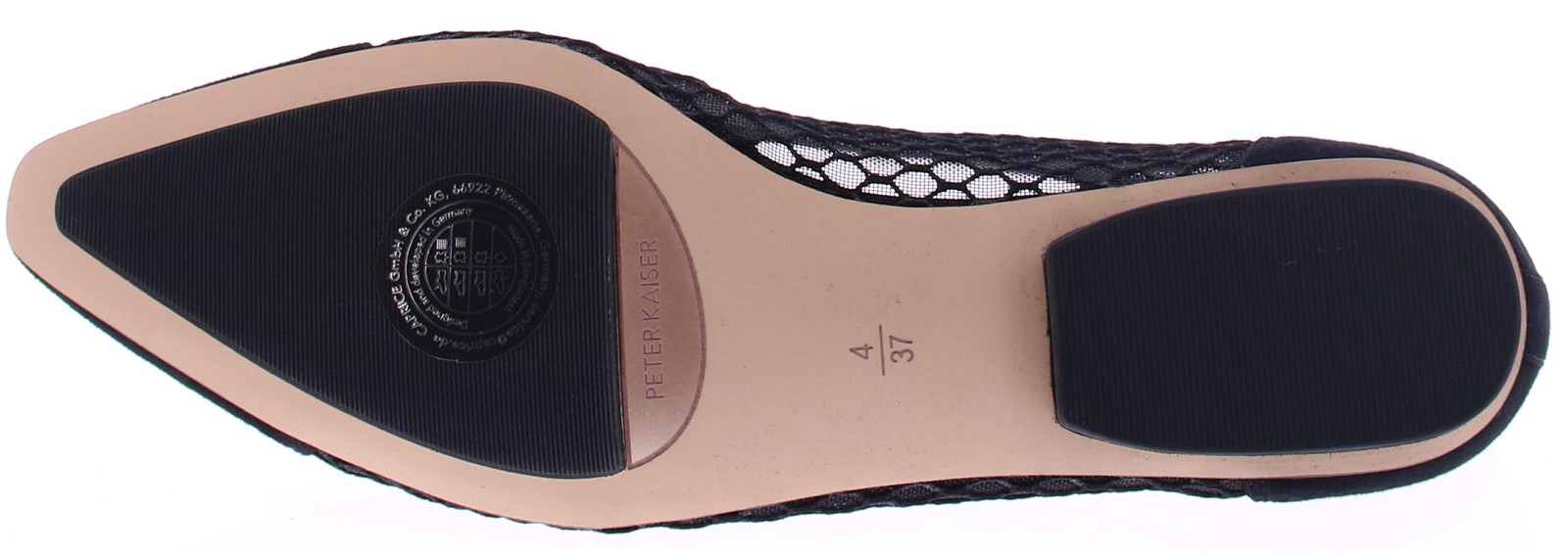 Zwart suède dames ballerina's van Peter Kaiser. Dit model heeft een opengewerkte mesh-stof die is tegengevoerd met fijn gaas. De spitse neus en het zachte suède zorgen voor een elegante uitstraling, terwijl de luchtige structuur bijzonder comfortabel draagt. Een moderne, verfijnde ballerina die moeiteloos combineert met zowel zakelijke outfits als chique gelegenheden. Ontdek ook de andere dames pumps van Peter Kaiser bij Klijsen.