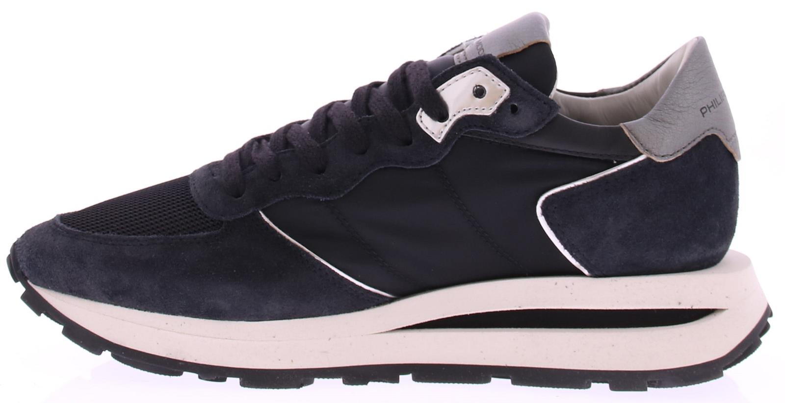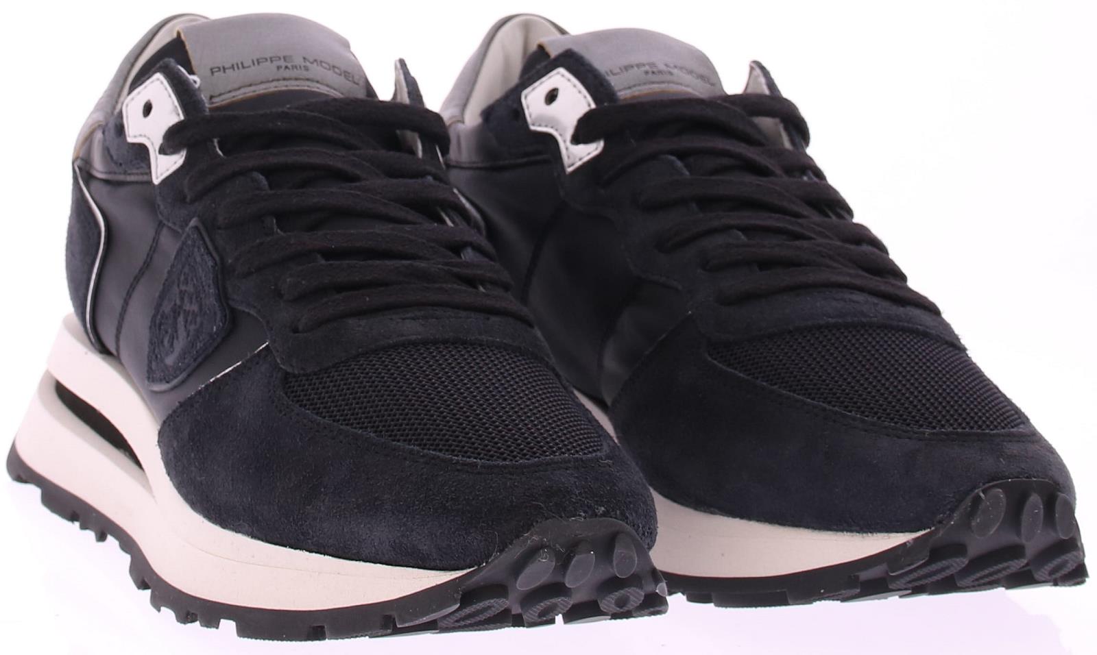 Zwart suede met stoffen dames sneaker van Philippe Model. Deze sneaker heeft een mix van zwart mesh en suede afgewerkt met leuke gunmetal leren accenten . Een leuk detail is de samenstelling van de zool met een uitstekend ontwerp op de hiel en een met de hand vervaardigd 3D-inzetstuk. Het voetbed is uitneembaar.
