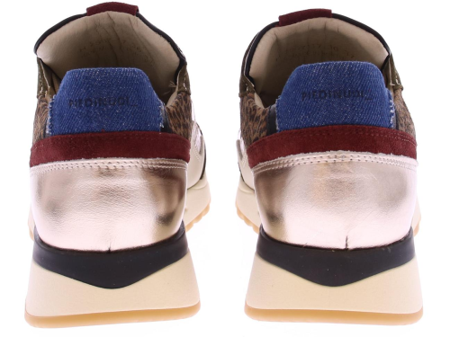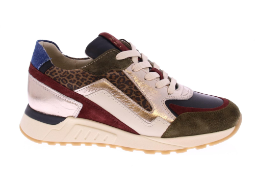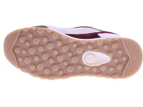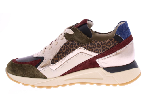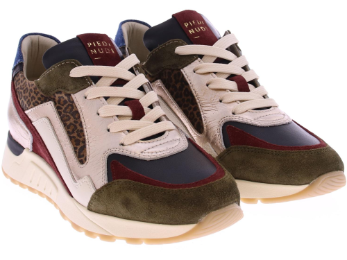 Bordeaux suede dames sneaker van Piedi Nudi. Deze lage sneaker model Selva 17.36 heeft een bovenwerk van zwart, en bordeaux suede en leuke panterprint accenten. Het uitneembare voetbed is te vervangen door een persoonlijke inlegzool. De breedte van de schoen is H.