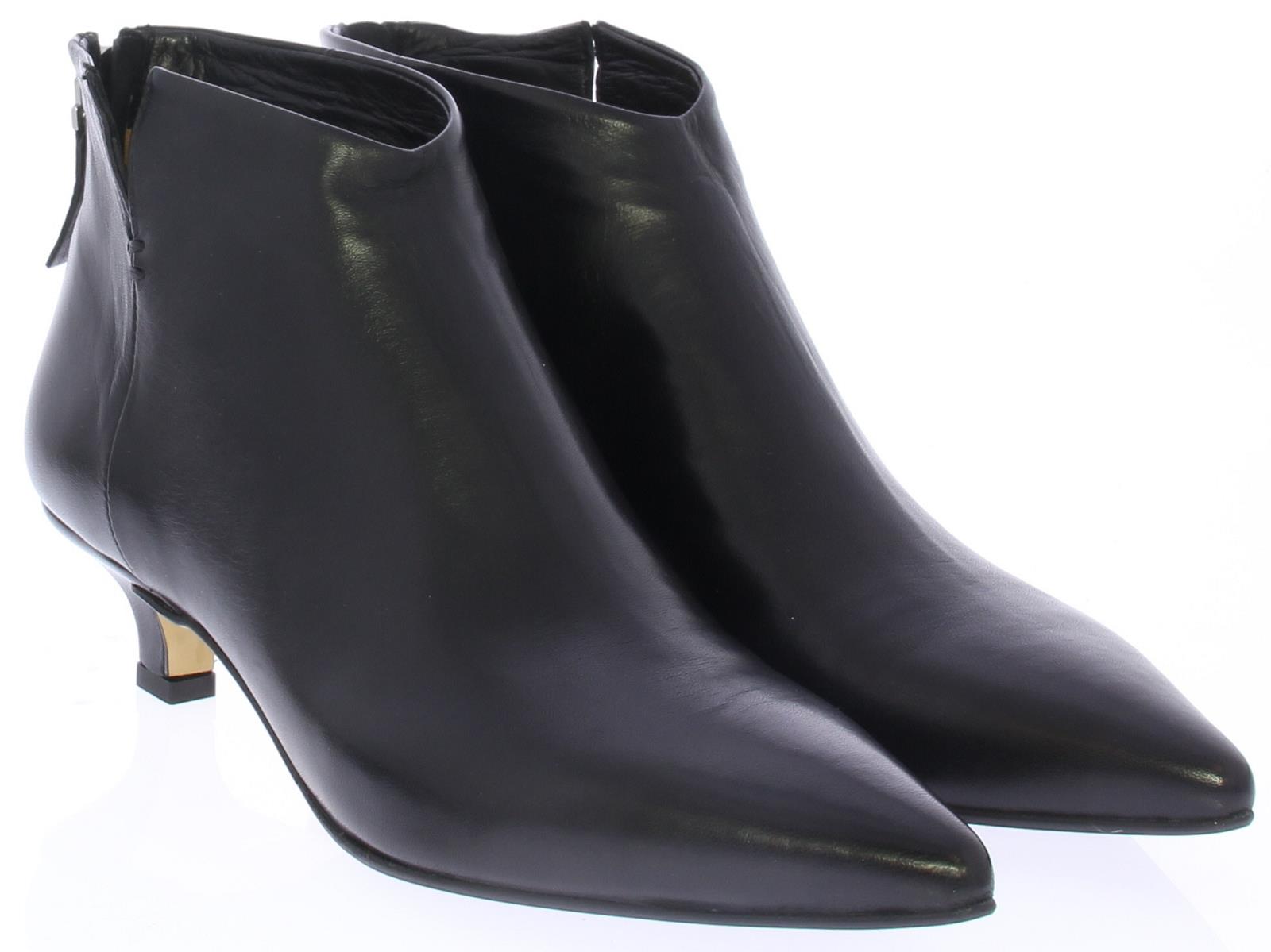 Zwart leren dames laarsje van Pomme d'or op een 4 cm hoog queenie hakje. Op de hiel sluit het laarsje met een rits. De zool is leer met een rubber inzet. De laarsje van Pomme d' or zijn sacchetto gemaakt van heel zacht Italiaans nappaleer, ook onder de voet.