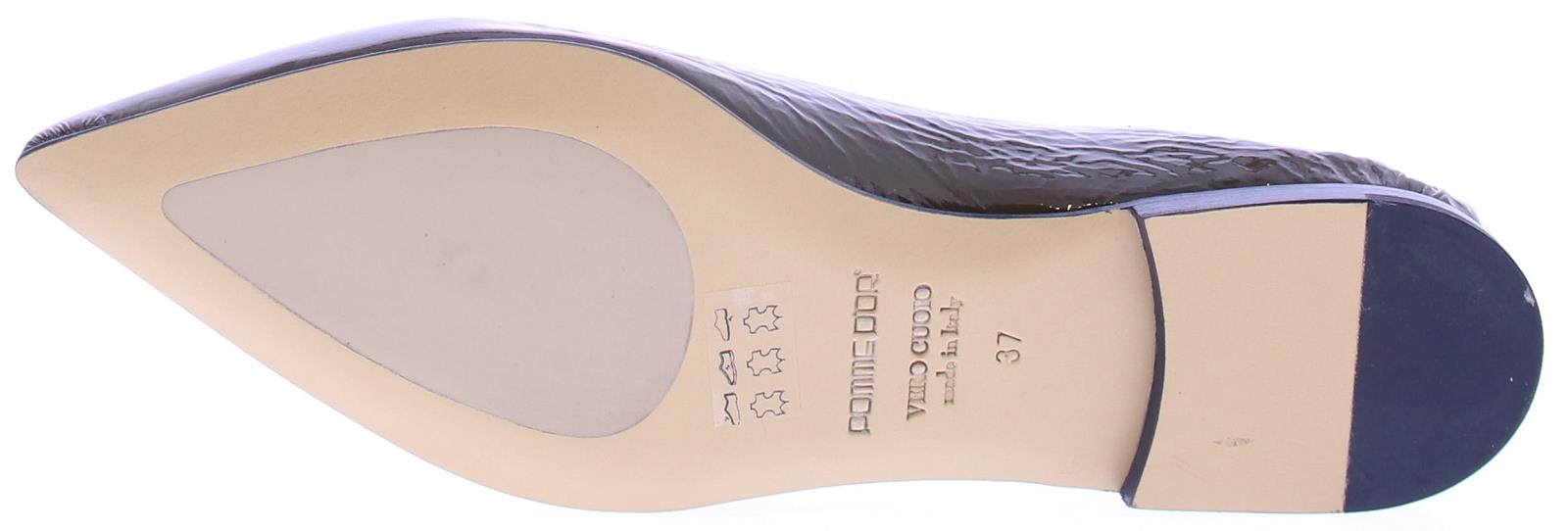Dames Ballerina van Pomme D'or uitgevoerd in bordeaux lak op een leren zool met rubber inzet in het sllijtvlak. De schoen is geheel sacchetto gemaakt. hierdoor zeer soepel en zacht aan de voet. Dit komt het draag comfort ten goede.