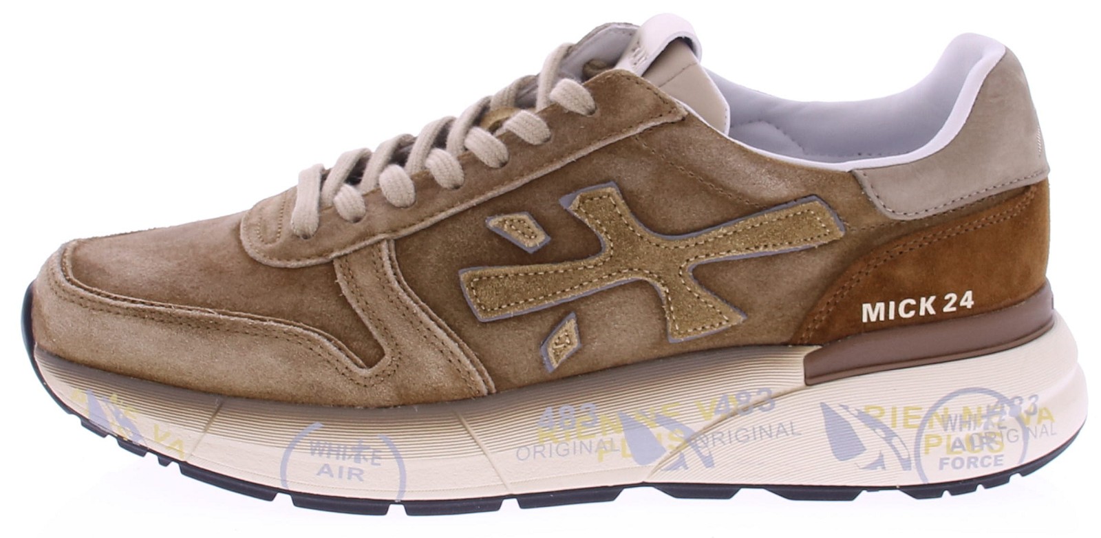 Premiata Mick 7712 – Tijdloze klasse met een moderne twist De Premiata Mick 7712 is de belichaming van ingetogen luxe en veelzijdigheid. Deze stijlvolle sneaker is uitgevoerd in een warme camel- en zandtint, vervaardigd uit hoogwaardig suède met subtiele leren details. De ton-sur-ton look wordt geaccentueerd door het lichtgrijze Premiata-logo en de kenmerkende grafische zool met “White Air” en “483 Original” branding. Het neutrale kleurenschema maakt deze sneaker perfect te combineren met vrijwel elke outfit – van casual jeans tot een nette chino. Dankzij de comfortabele pasvorm en dempende zool is de Mick 7712 ideaal voor dagelijks gebruik met een stijlvolle uitstraling.