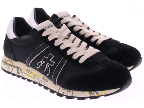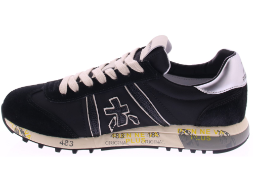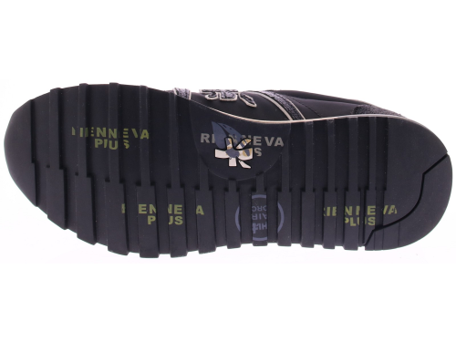 Zwart stoffen met suede dames sneaker van Premiata met zilveren leren accenten op de hiel . De schoen is geheel leer gevoerd en heeft een uitneembaar voetbed. De herkenbare Premiata zool is voorzien van de iconische Premiata tekst en maakt de sneaker meteen herkenbaar, en biedt uitstekende demping en comfort. De fantastische pasvorm zorgt ervoor dat de schoen perfect aansluit en ideaal is voor langdurig dragen. Daarnaast heeft de sneaker een uitneembare zool, wat zorgt voor extra flexibiliteit en gemak. Een perfecte combinatie van stijl, comfort en kwaliteit die je van Premiata mag v erwachten.