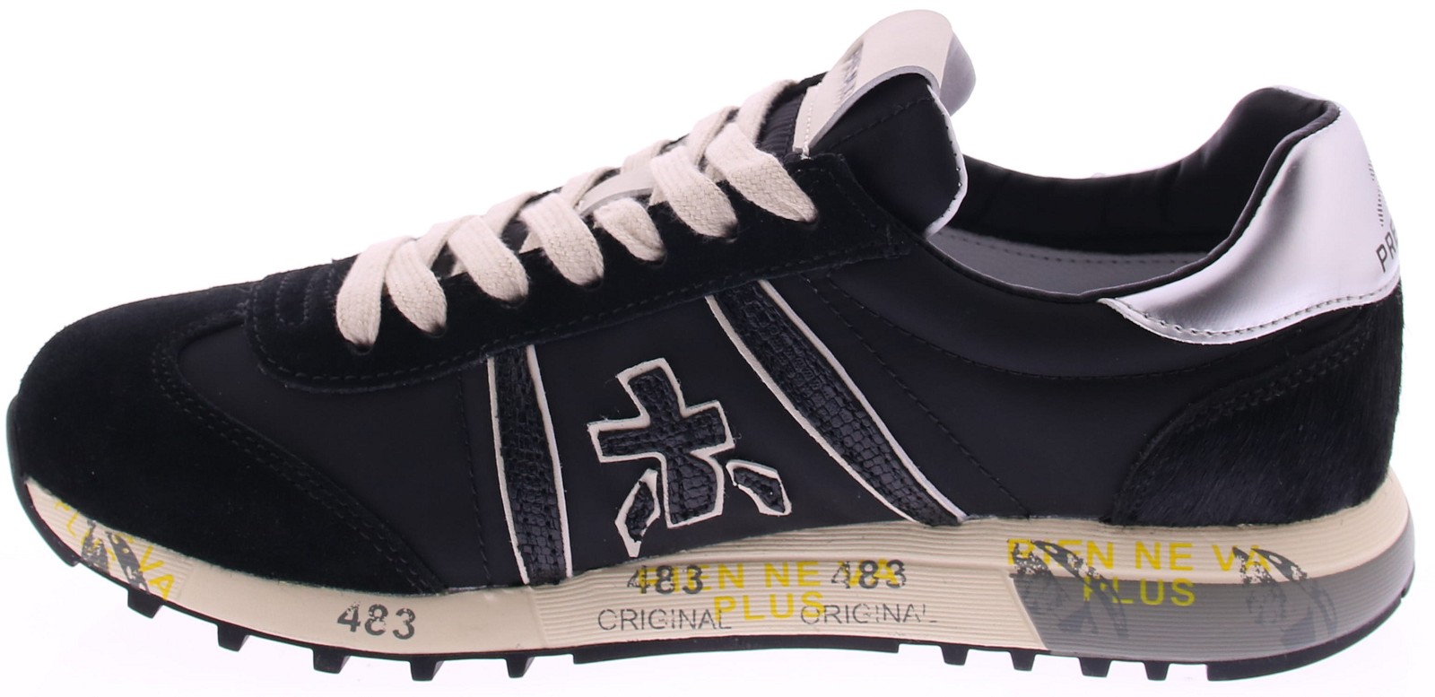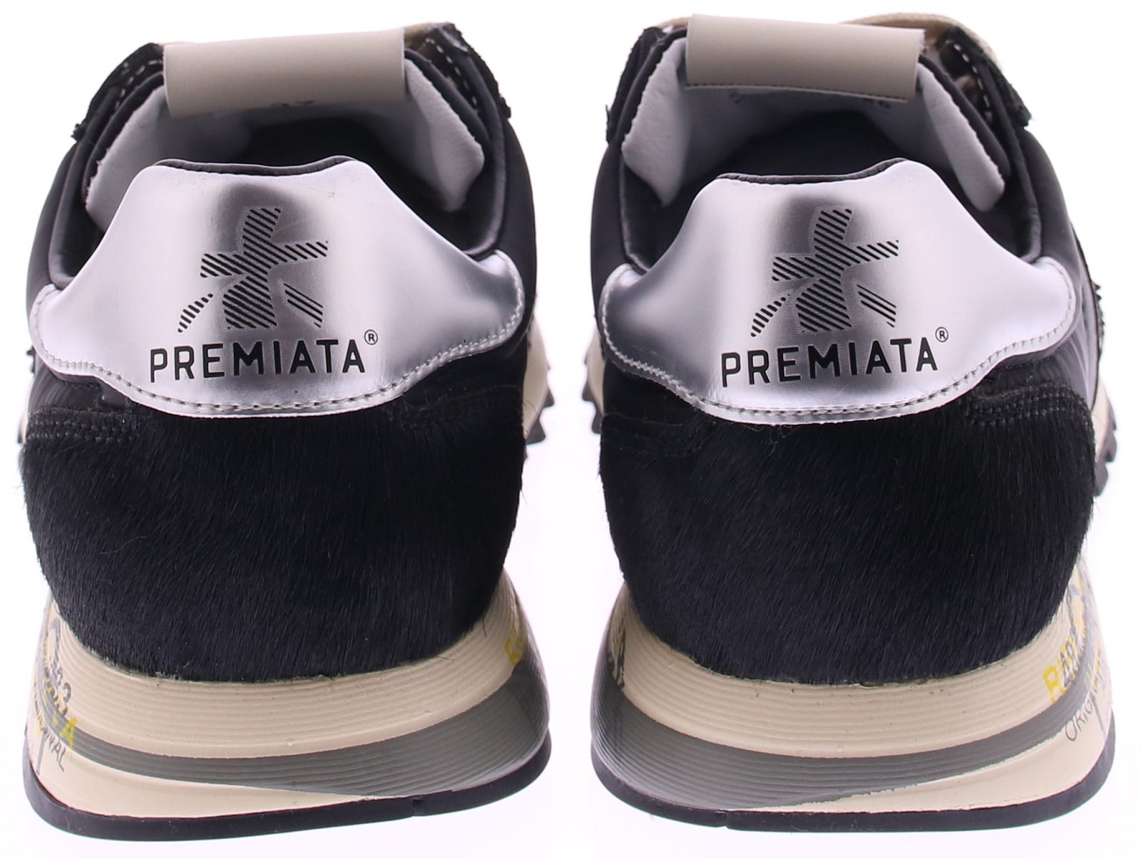 Zwart stoffen met suede dames sneaker van Premiata met zilveren leren accenten op de hiel . De schoen is geheel leer gevoerd en heeft een uitneembaar voetbed. De herkenbare Premiata zool is voorzien van de iconische Premiata tekst en maakt de sneaker meteen herkenbaar, en biedt uitstekende demping en comfort. De fantastische pasvorm zorgt ervoor dat de schoen perfect aansluit en ideaal is voor langdurig dragen. Daarnaast heeft de sneaker een uitneembare zool, wat zorgt voor extra flexibiliteit en gemak. Een perfecte combinatie van stijl, comfort en kwaliteit die je van Premiata mag v erwachten.