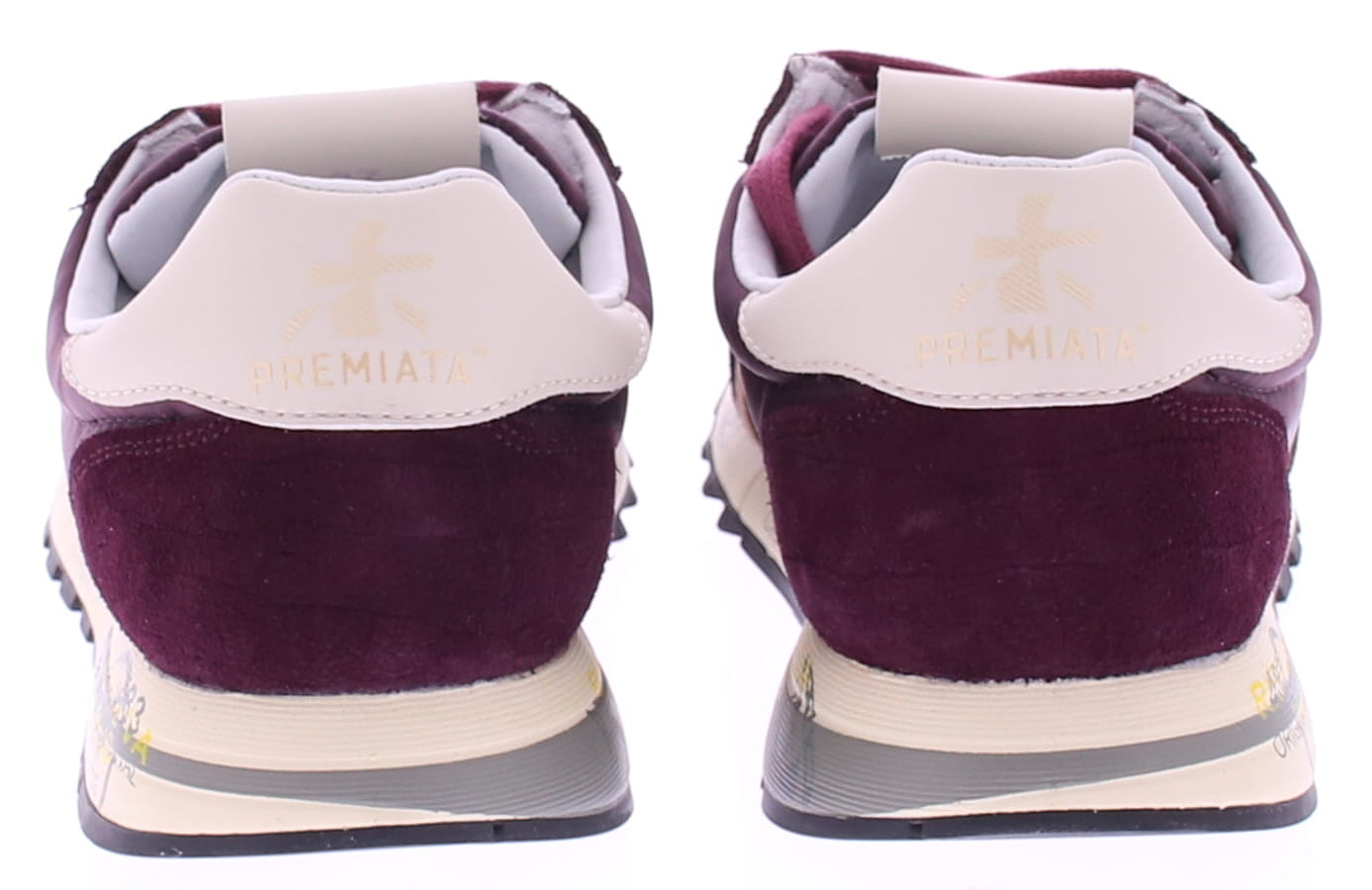 Bordeaux stoffen met suede dames sneaker van Premiata met beige leren accenten op de hiel . De herkenbare Premiata zool is voorzien van de iconische Premiata tekst en maakt de sneaker meteen herkenbaar, en biedt uitstekende demping en comfort. De fantastische pasvorm zorgt ervoor dat de schoen perfect aansluit en ideaal is voor langdurig dragen. Daarnaast heeft de sneaker een uitneembare zool, wat zorgt voor extra flexibiliteit en gemak. Een perfecte combinatie van stijl, comfort en kwaliteit die je van Premiata mag verwachten.