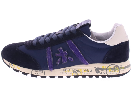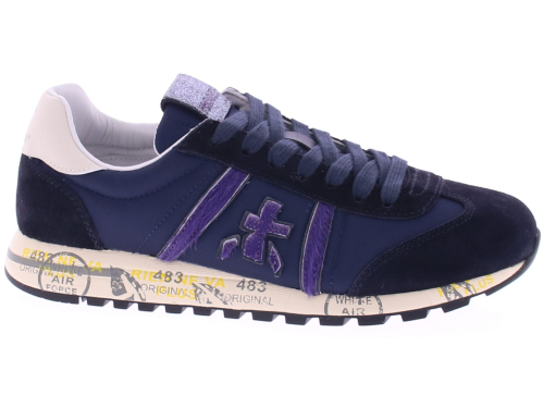 Donkerblauw stoffen met suede dames sneaker van Premiata met beige leren accenten op de hiel . De herkenbare Premiata zool is voorzien van de iconische Premiata tekst en maakt de sneaker meteen herkenbaar, en biedt uitstekende demping en comfort. De fantastische pasvorm zorgt ervoor dat de schoen perfect aansluit en ideaal is voor langdurig dragen. Daarnaast heeft de sneaker een uitneembare zool, wat zorgt voor extra flexibiliteit en gemak. Een perfecte combinatie van stijl, comfort en kwaliteit die je van Premiata mag verwachten.