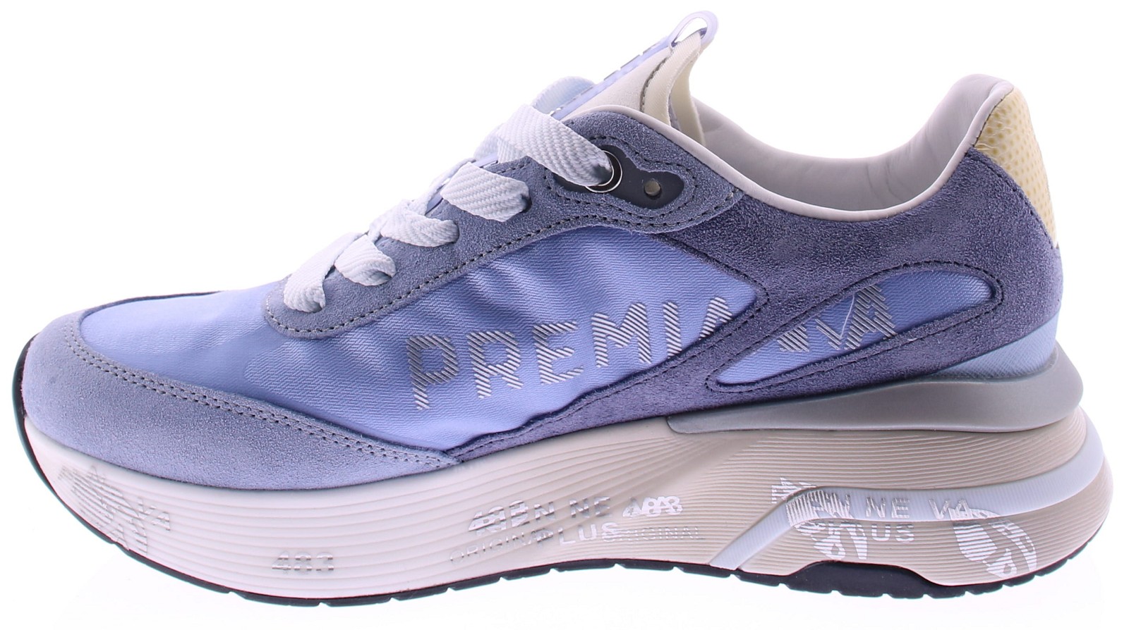 Lichtblauw suède met stoffen dames sneakers van Premiata. Model Moerun heeft een frisse en moderne uitstraling met een lichtblauwe basis en subtiele pastelkleurige accenten. De zool heeft een overgang van lichtblauw naar wit, wat de sneaker een verfijnde look geeft. De herkenbare Premiata zool zorgt voor uitstekende demping en comfort, terwijl de fantastische pasvorm zorgt voor een perfecte fit. Bovendien is de sneaker voorzien van een uitneembare zool, wat extra flexibiliteit biedt. Ontdek ook de andere dames sneakers van Premiata bij Klijsen.