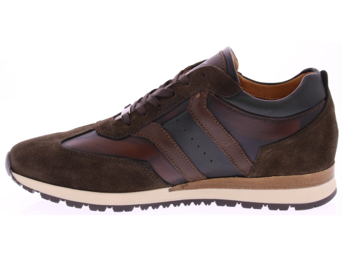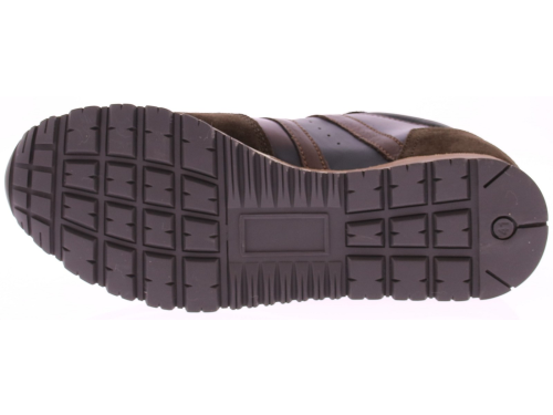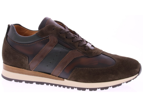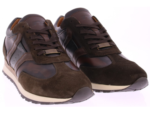 Donkerbruin leer met suede heren sneaker van Rapidsoul. deze heren sneaker in donkerbruin combineert stijl met karakter. Het leren bovenwerk is voorzien van een opvallend vlak met een subtiel vlameffect, wat de schoen een unieke uitstraling geeft. Dankzij de leren voering en duurzame rubberenzool biedt deze sneaker zowel comfort als kwaliteit voor dagelijks gebruik.