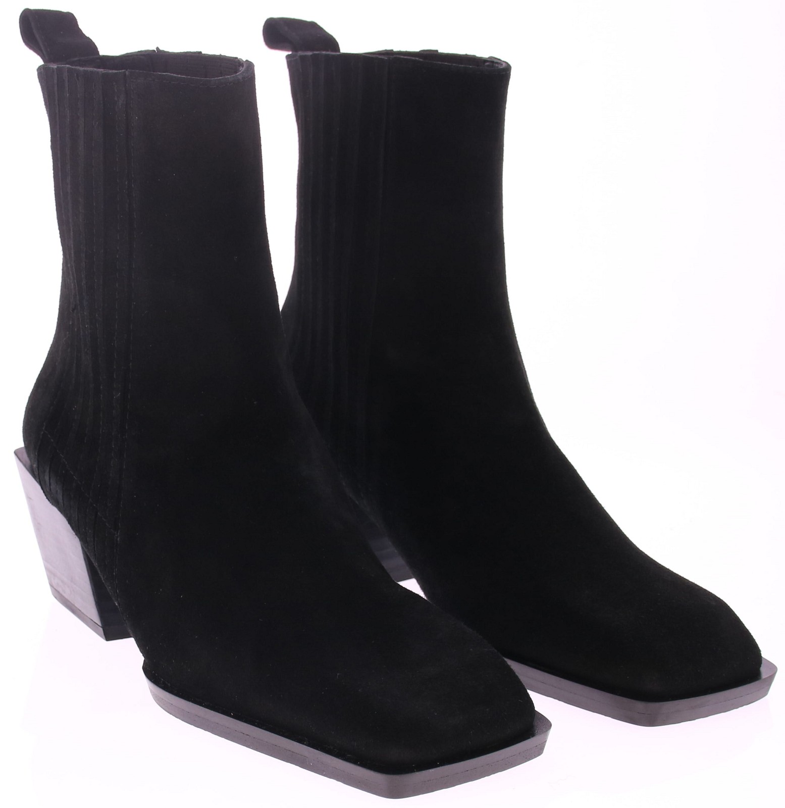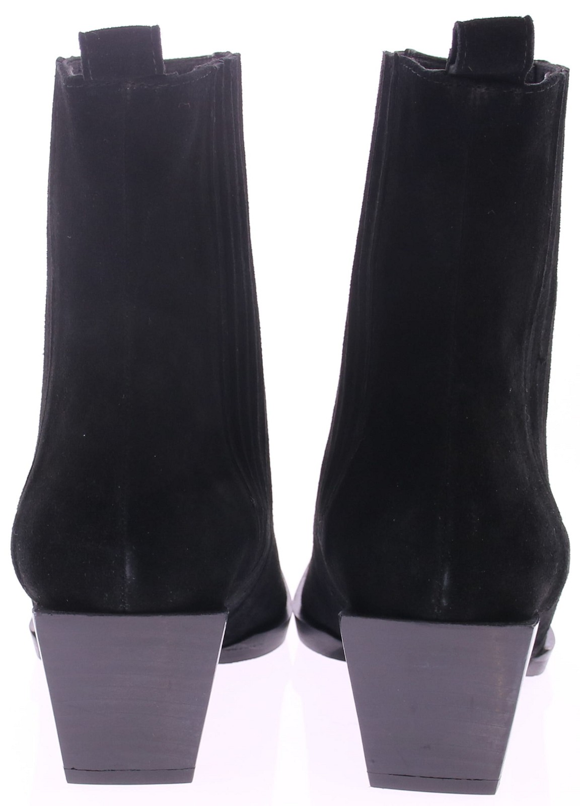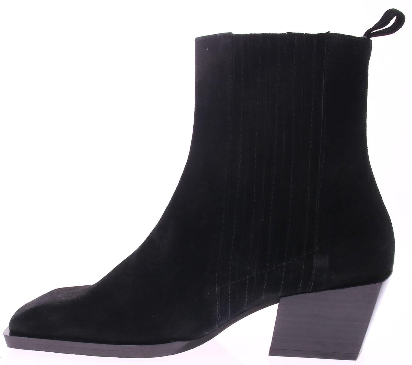 Zwart suéde dames korte laars van Ras. Deze laars is voorzien van elastiek aan de zijkant waardoor de laars goed aansluit om de enkel, en trek je ze gemakkelijk aan dankzij de praktische lus aan de hiel. De iets schuine blokhak van 6 cm geeft een stoere look en zorgt tegelijk voor stabiel loopcomfort. Een veelzijdige laars die perfect past bij zowel een jeans als een rok – modern, vrouwelijk en moeiteloos draagbaar.