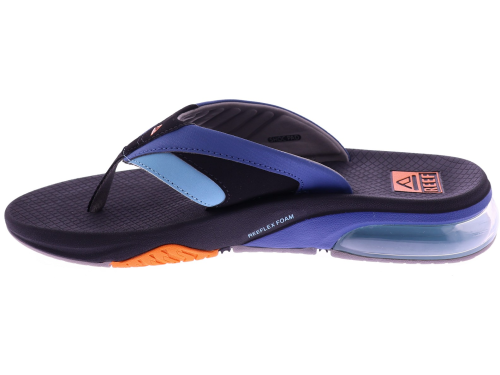Blauw heren slipper van Reef. Deze Fanning+ is een sportieve teenslipper met een comfortabele, voorgevormde zool en een zachte band in meerdere blauwtinten voor een moderne uitstraling. De schokabsorberende tussenzool en het transparante Air-bubbelsysteem in de hiel bieden extra demping en stabiliteit. De duurzame loopzool zorgt voor uitstekende grip, ideaal voor actief zomers gebruik. Een licht en functioneel model dat stijl en comfort moeiteloos combineert. Ontdek ook de andere heren slippers van Reef bij Klijsen.