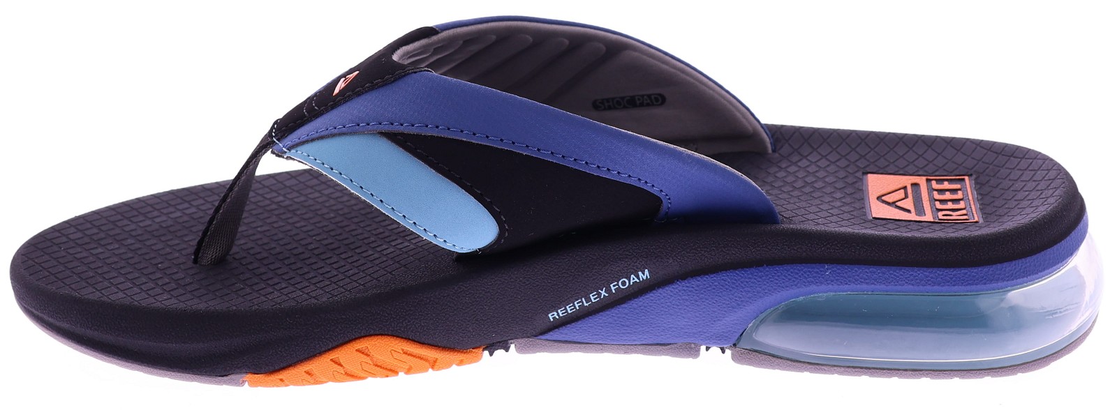 Blauw heren slipper van Reef. Deze Fanning+ is een sportieve teenslipper met een comfortabele, voorgevormde zool en een zachte band in meerdere blauwtinten voor een moderne uitstraling. De schokabsorberende tussenzool en het transparante Air-bubbelsysteem in de hiel bieden extra demping en stabiliteit. De duurzame loopzool zorgt voor uitstekende grip, ideaal voor actief zomers gebruik. Een licht en functioneel model dat stijl en comfort moeiteloos combineert. Ontdek ook de andere heren slippers van Reef bij Klijsen.