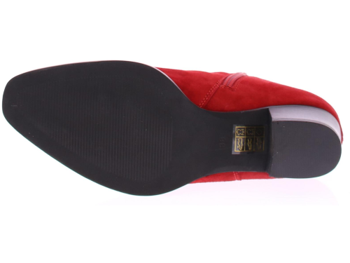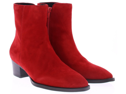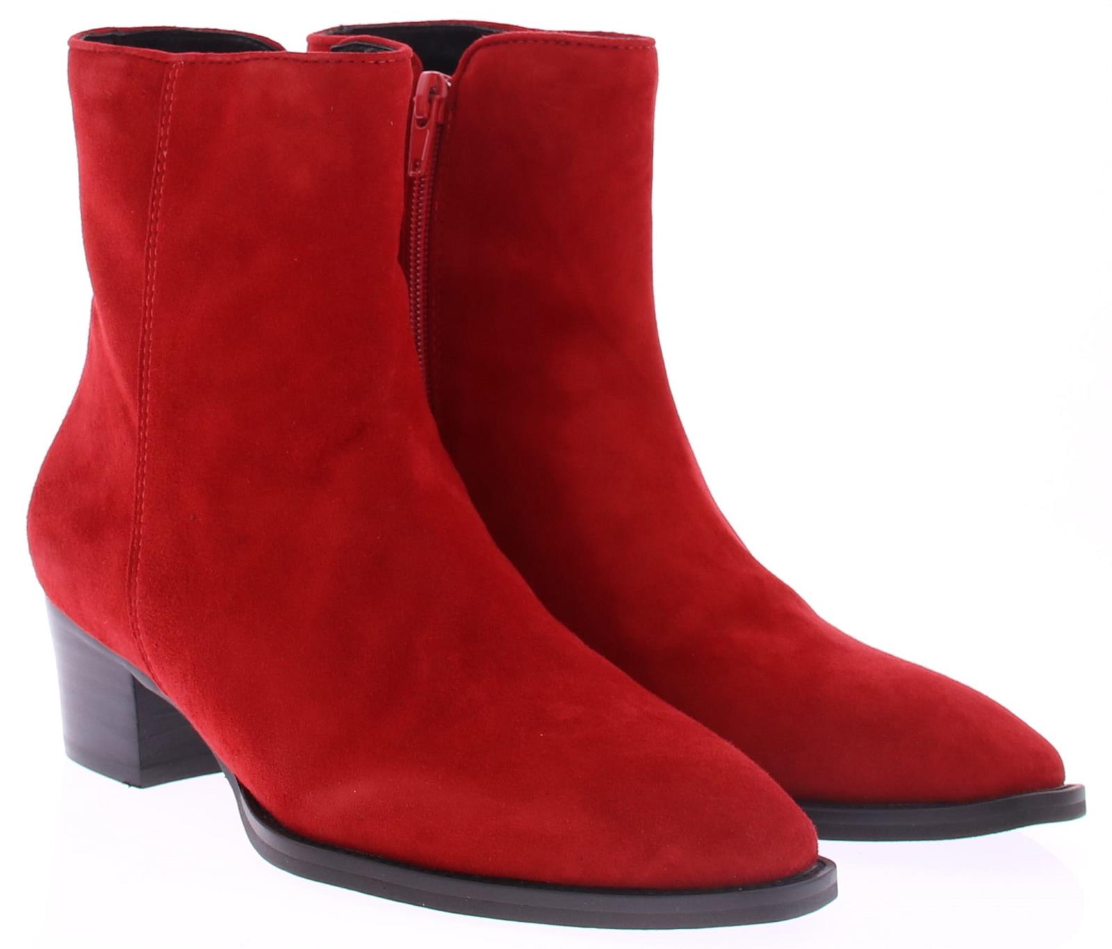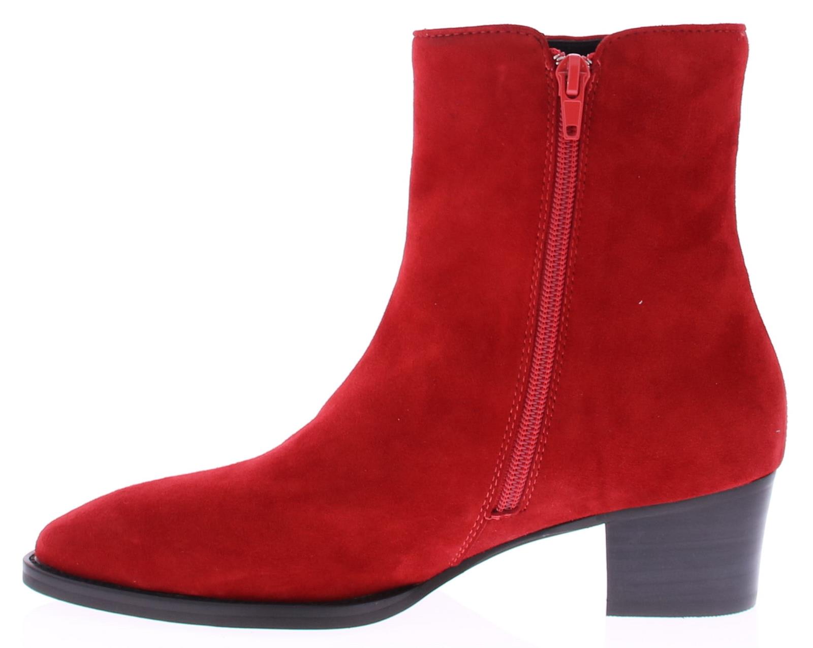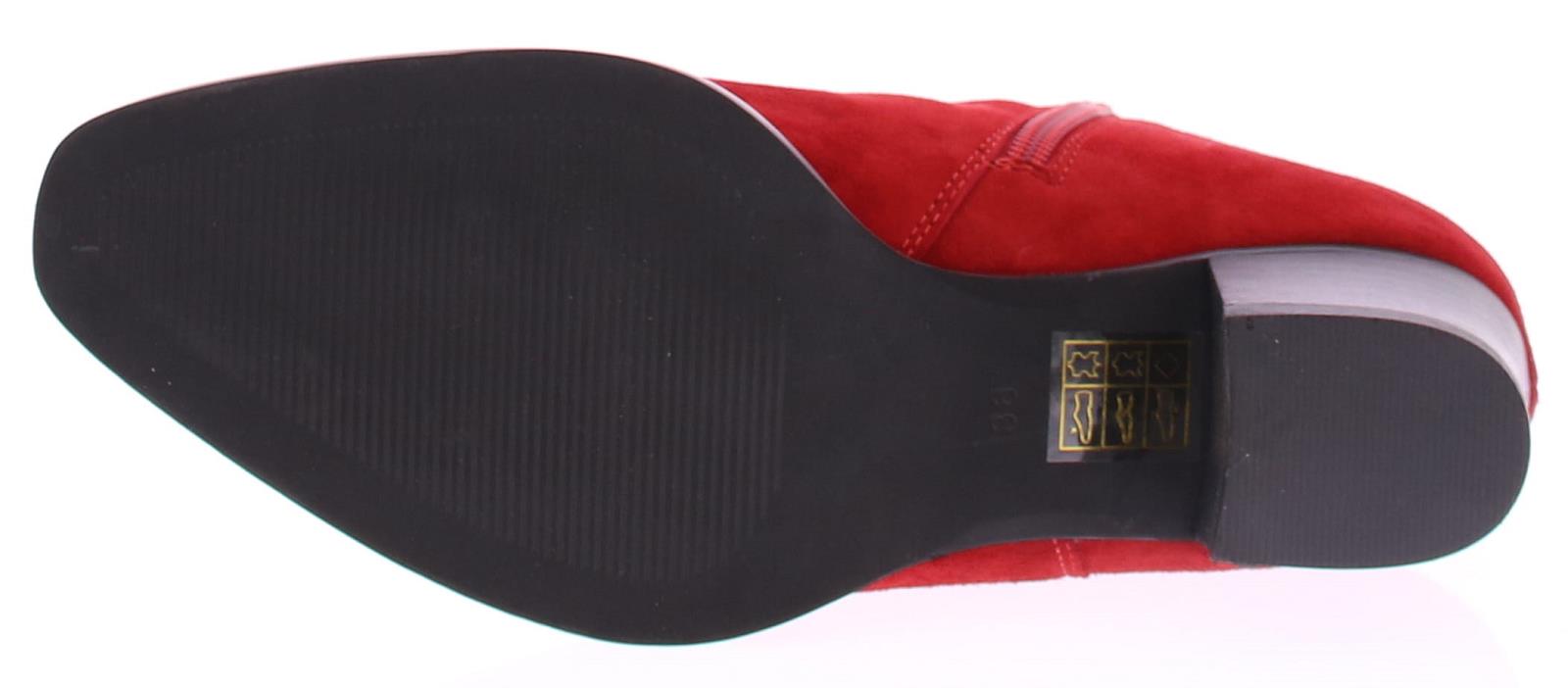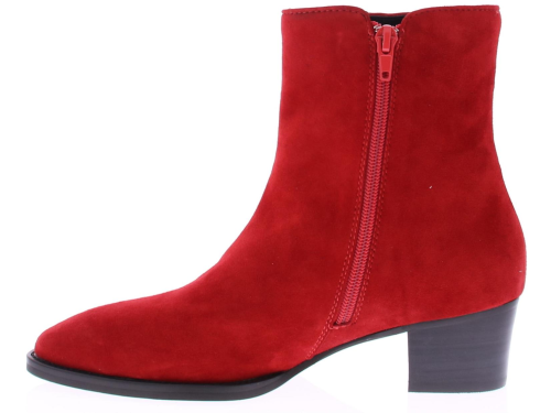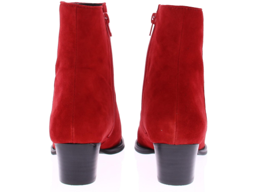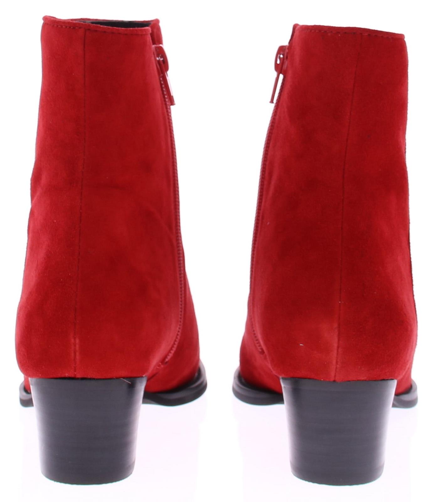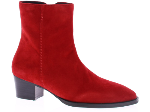 Rood suede dames enkellaars van Di Lauro. De laars heeft een leren voering, een kunststof zool en heeft een hakhoogte van 4 cm.
