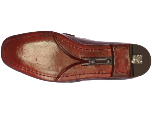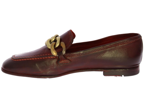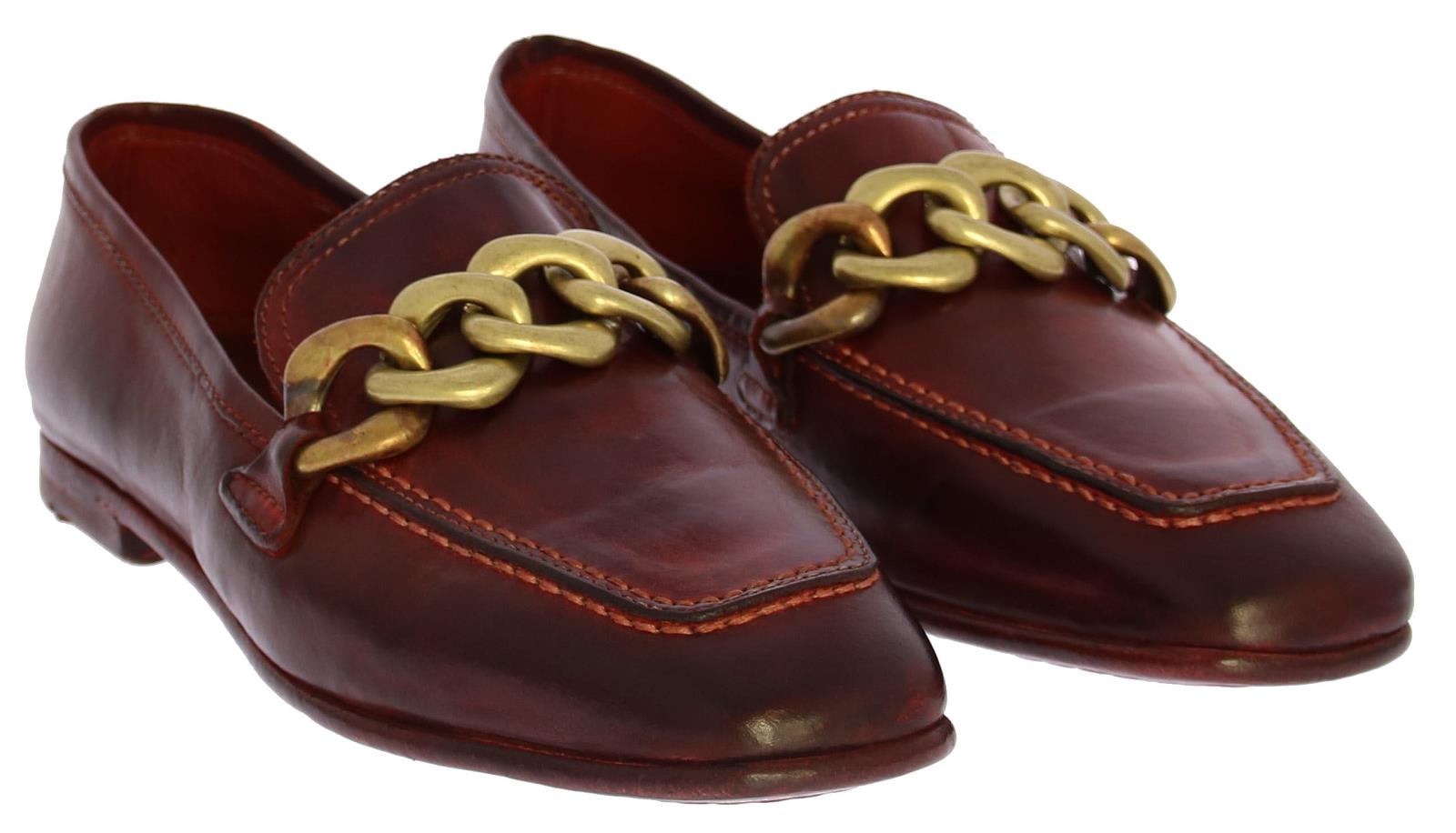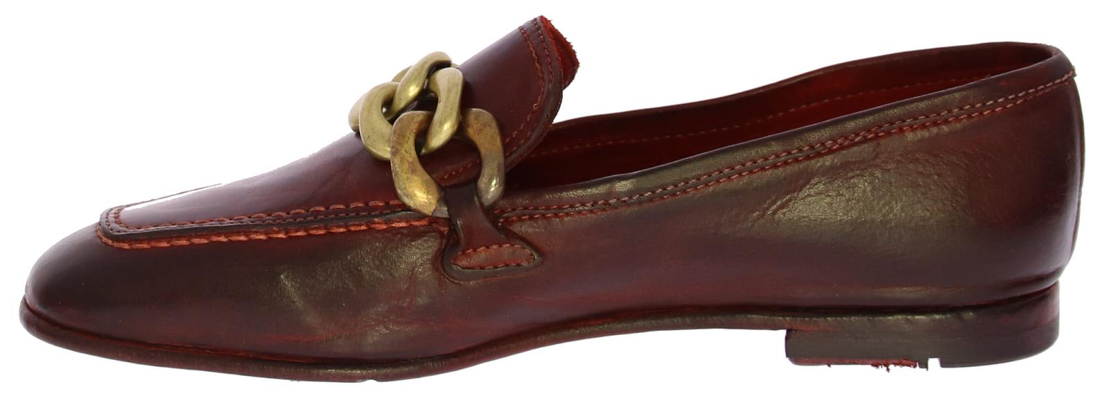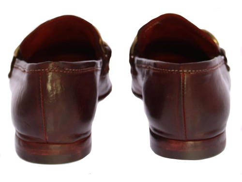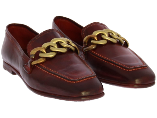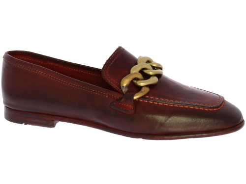 Roodbruine leren dames instapper van Lemargo. Uitgevoerd in heel mooi gewassen buffelleer met een intens mooie diepe kleur met schakeringen. Afgewerkt met een mat goudkleurig bit. Doordat de hele schoen in gedoopt in het verfbad zijn ook de luxe leren zool en de leren voering dezelfde kleur.