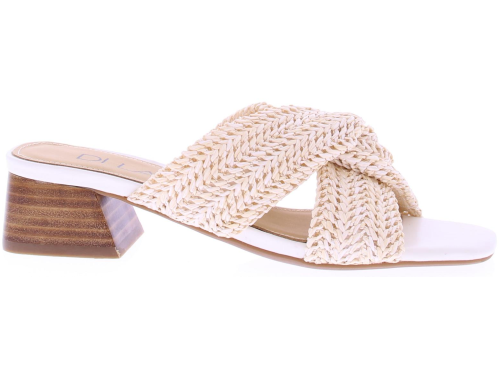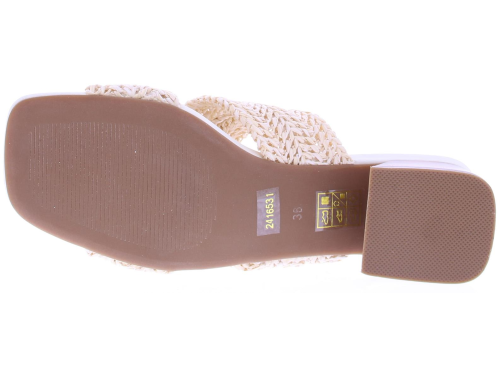 Room leren dames slipper van Di Lauro. Deze slipper heeft een gevlochten raffia kruisband over de wreef. De comfortabele hakhoogte is 4 cm hoog. Je draagt deze slippers in combinatie met een zomers jurkje naar het strand of met een maxi dress naar een feestje.