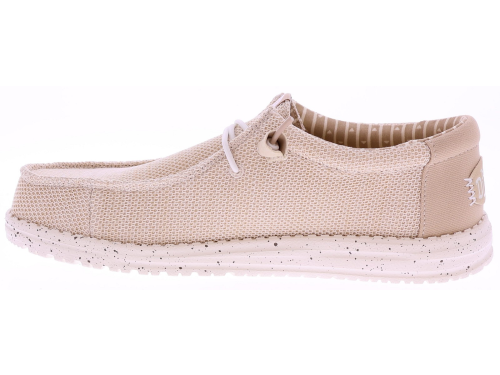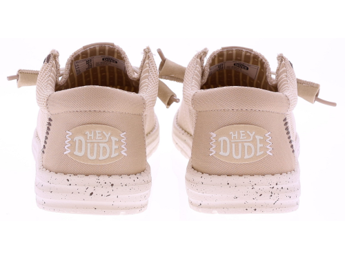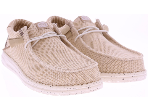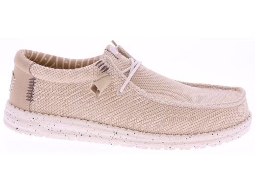 Beige textiel heren instapper van Hey Dude. Deze Wally Stretch Sox in de kleur Irish Cream is uitgevoerd in soepel, elastisch knitmateriaal dat zich comfortabel naar de voet vormt. De ultralichte zool met speckle-effect zorgt voor flexibel draaggemak, terwijl de zachte voering een luchtig en ontspannen gevoel geeft. Dankzij het uitneembare voetbed geniet je van extra ondersteuning en eenvoudig onderhoud. Een ideale keuze voor dagelijks comfort in een moderne, casual stijl. Ontdek ook de andere heren instappers van Hey Dude bij Klijsen.