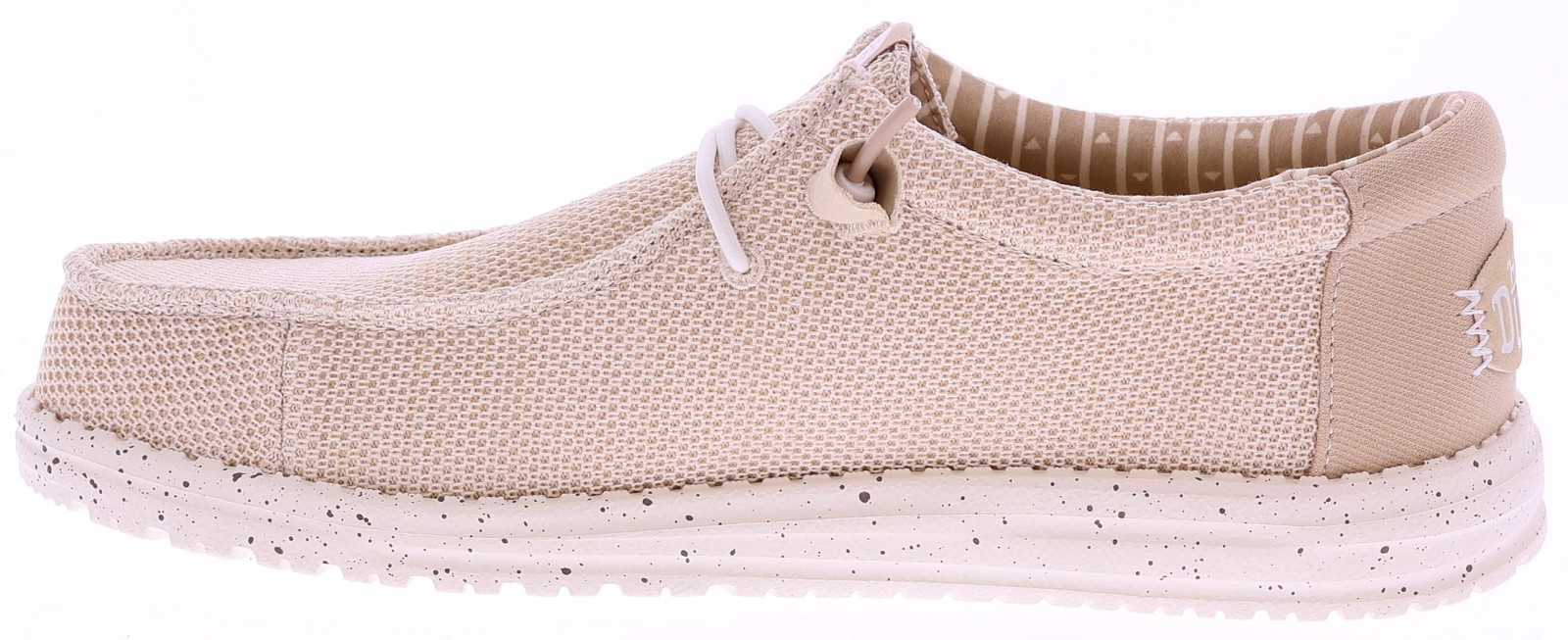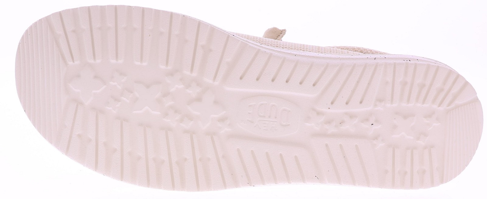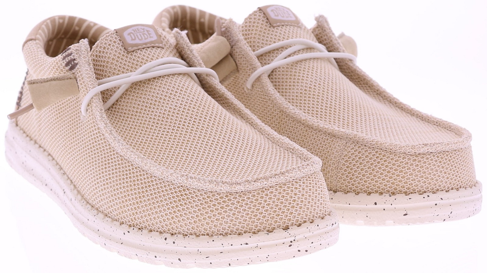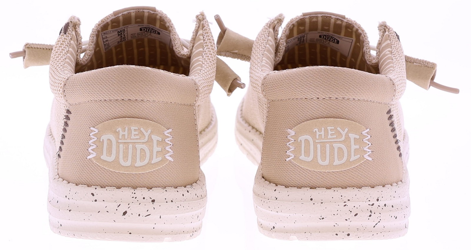 Beige textiel heren instapper van Hey Dude. Deze Wally Stretch Sox in de kleur Irish Cream is uitgevoerd in soepel, elastisch knitmateriaal dat zich comfortabel naar de voet vormt. De ultralichte zool met speckle-effect zorgt voor flexibel draaggemak, terwijl de zachte voering een luchtig en ontspannen gevoel geeft. Dankzij het uitneembare voetbed geniet je van extra ondersteuning en eenvoudig onderhoud. Een ideale keuze voor dagelijks comfort in een moderne, casual stijl. Ontdek ook de andere heren instappers van Hey Dude bij Klijsen.