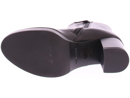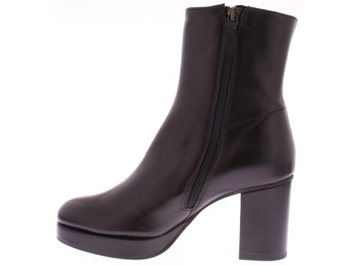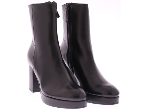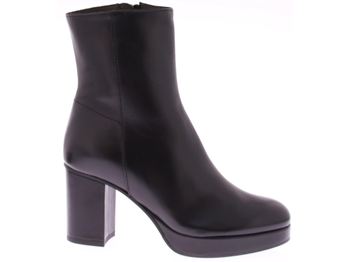 Zwart leren dames laars van Rossano Bisconti. Dit model heeft een bovenwerk van mooi zacht leer. De plateau zool heeft een hoogte van 2 cm. Het binnenwerk is leer gevoerd met een vast voetbed. De blokhak heeft een hoogte van 7 cm.