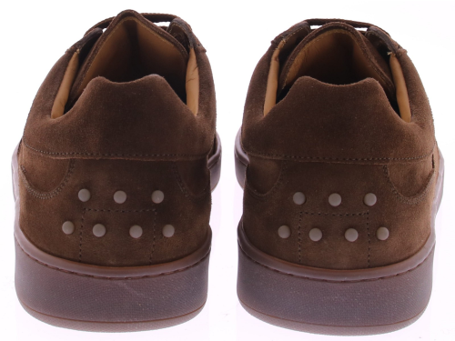 Deze stijlvolle Rossano Bisconti sneaker in donkerbruin suède combineert Italiaanse finesse met dagelijks comfort. Het minimalistische ontwerp en de ton-sur-ton afwerking maken deze schoen een veelzijdige keuze voor elke moderne man. De sneaker is voorzien van een bruine rubberen zool die licht en flexibel is, en daarmee zorgt voor een uitstekende grip en demping. Dankzij de leren voering blijft de schoen ademend en comfortabel, zelfs bij langdurig dragen. Het uitneembare voetbed maakt deze sneaker bovendien geschikt voor eigen inlegzolen en ideaal voor wie extra ondersteuning of orthopedische aanpassing nodig heeft.