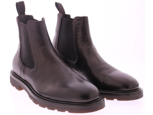 Rossano Bisconti Chelsea Boot – Donkerbruin Leder met Sportieve Zool Geef je outfit een stijlvolle upgrade met deze Rossano Bisconti Chelsea boot in rijk donkerbruin gladleer. Deze klassieke enkellaars met een modern randje is een must-have voor de modebewuste man die houdt van Italiaanse elegantie gecombineerd met dagelijks comfort. De elastische zijpanelen en hiel-lus zorgen voor een gemakkelijke instap, terwijl de sportieve rubberen zool niet alleen grip en demping biedt, maar ook een eigentijdse, casual look creëert. De luxe uitstraling van het donkerbruine leer maakt deze Chelsea boot perfect voor zowel formele als informele gelegenheden.
