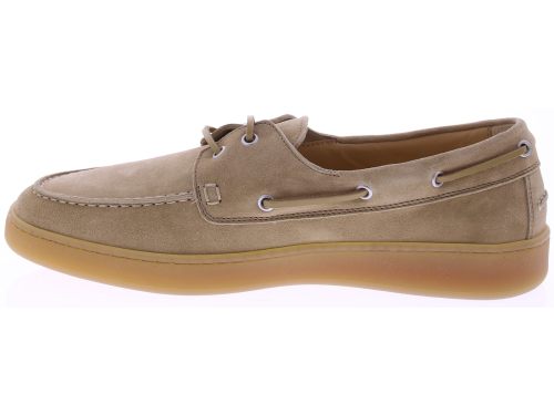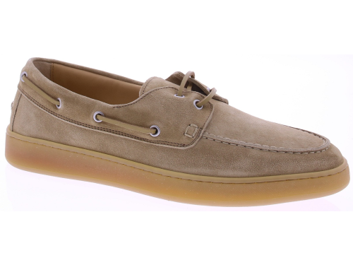 Beige suède heren bootschoenen van Rossano Bisconti. Deze bootschoen is uitgevoerd in suède en volledig leer gevoerd. Het klassieke veterdetail rondom en de subtiele stiksels geven het model een tijdloze, nautische uitstraling. De lichte, flexibele rubberzool zorgt voor een soepele afwikkeling en een moderne touch. Perfect te combineren met een chino of zomers pak voor een stijlvolle, ontspannen look.