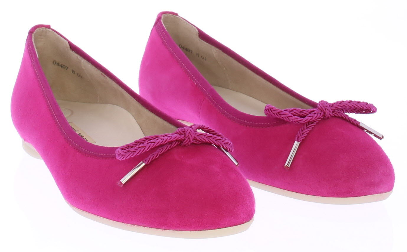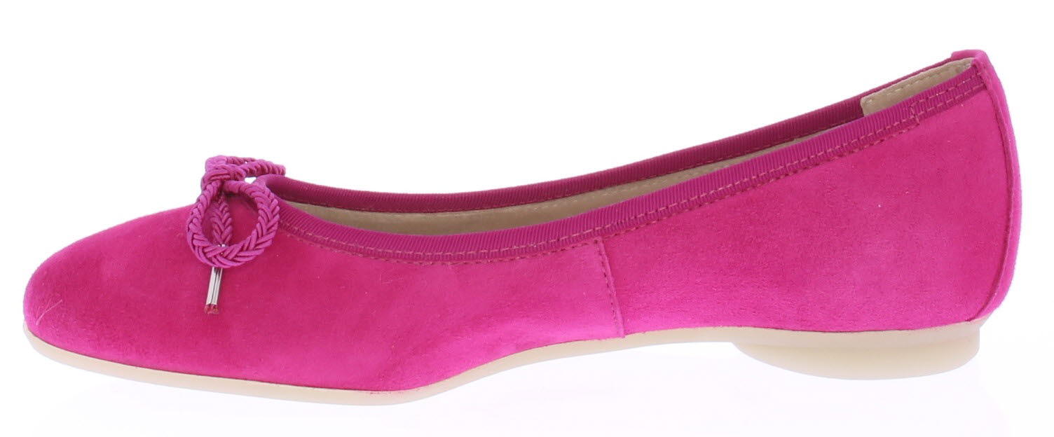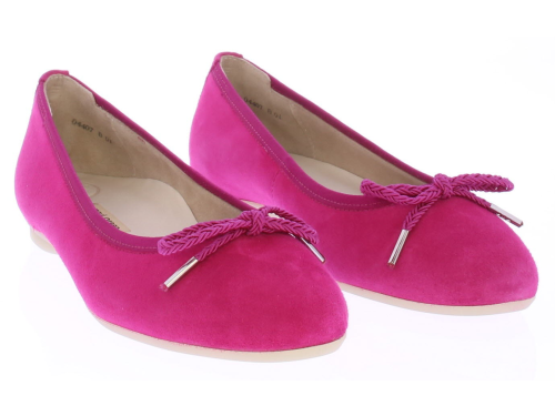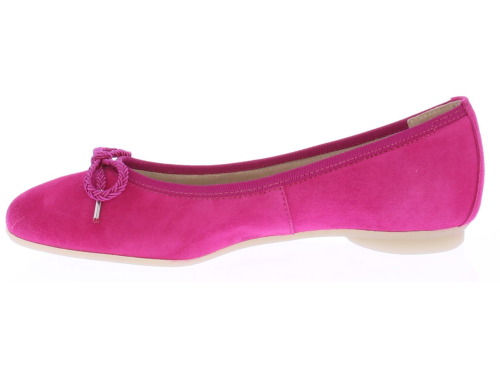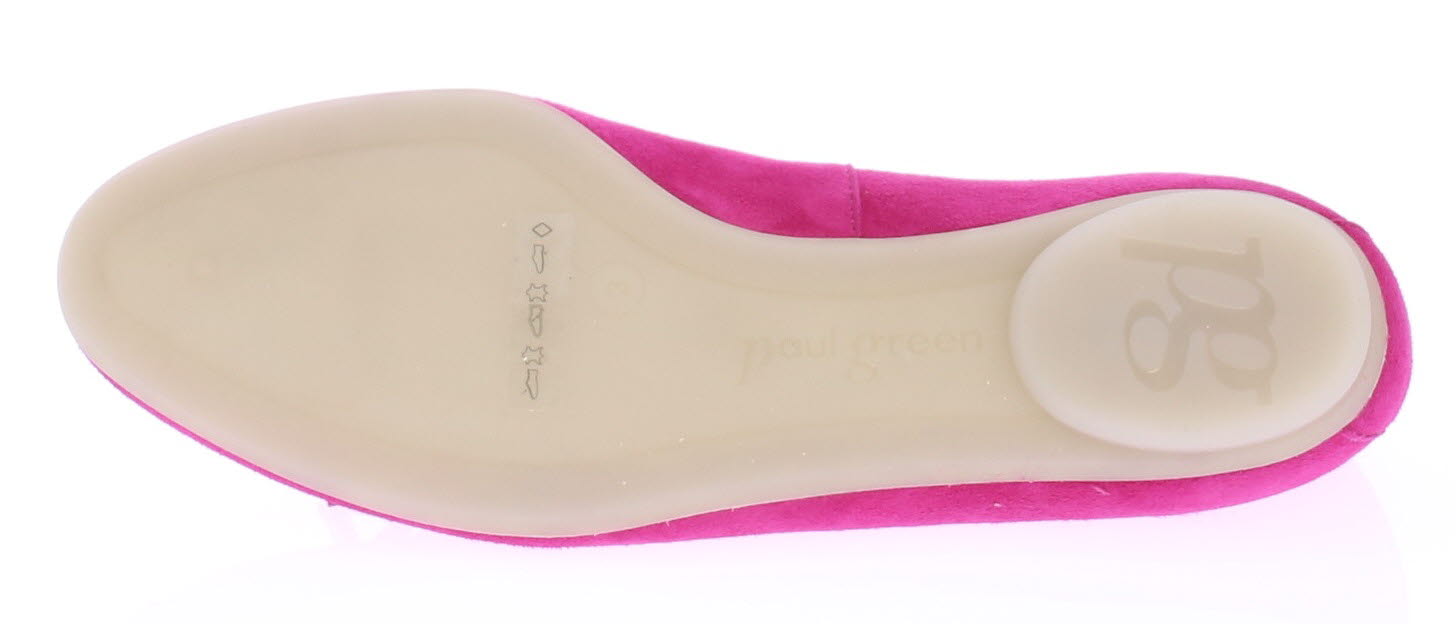 Fuchsia suede ballerina van Paul Green. Gemaakt op de super soft maakwijze waardoor extra comfortabel. De zool is van buigzaaam rubber en het voetbed van leer.