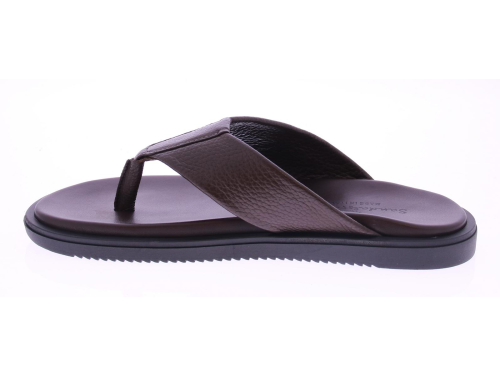 Deze luxe heren teenslipper van The Sandals Factory combineert stijl en comfort. Het bovenwerk en de voering zijn volledig vervaardigd uit hoogwaardig leer, wat zorgt voor een soepele pasvorm en een verfijnde uitstraling. De donkerbruine kleur geeft de slipper een tijdloze en elegante look, terwijl het duurzame rubberen onderwerk zorgt voor extra grip en draagcomfort. Perfect voor zomerse gelegenheden!