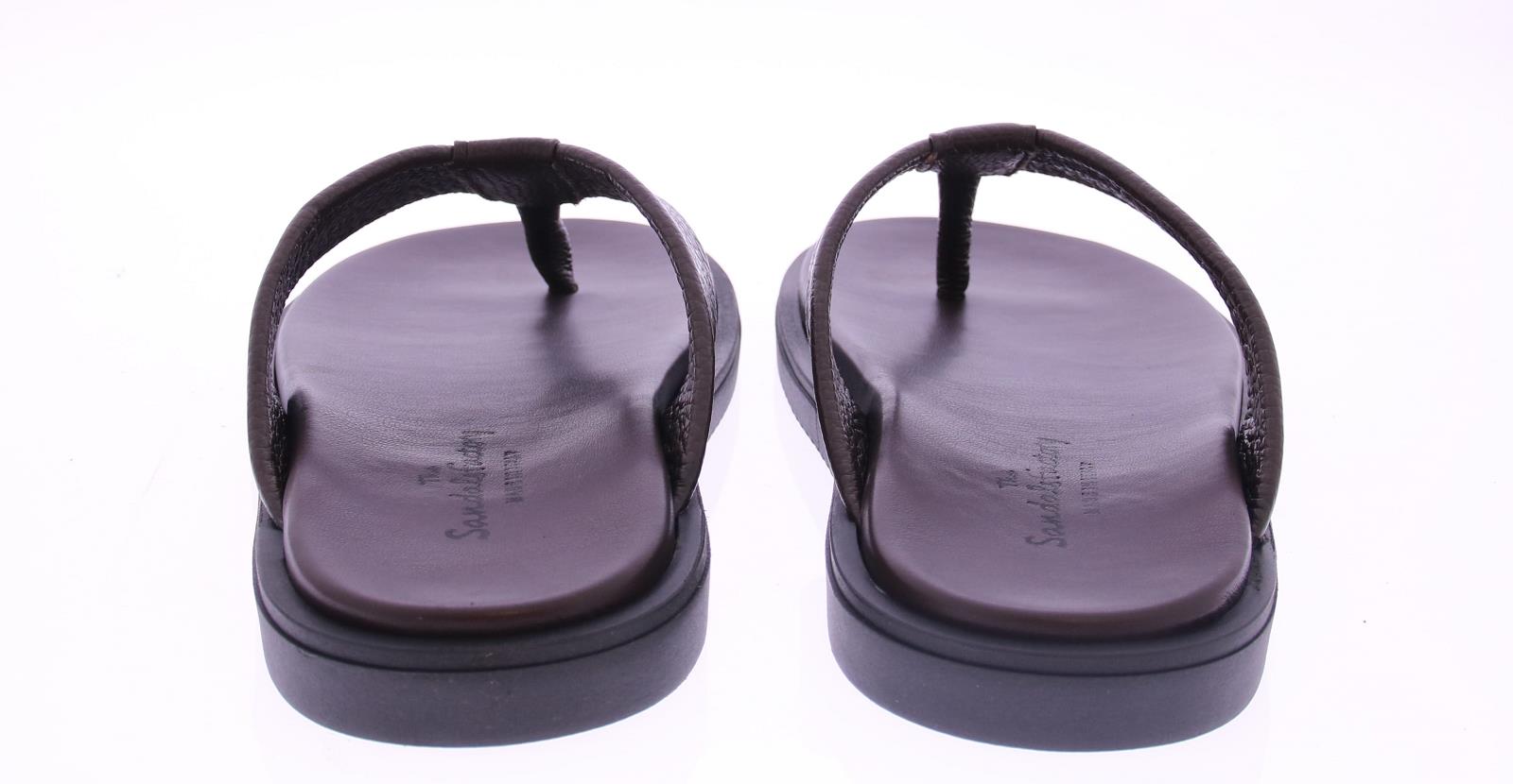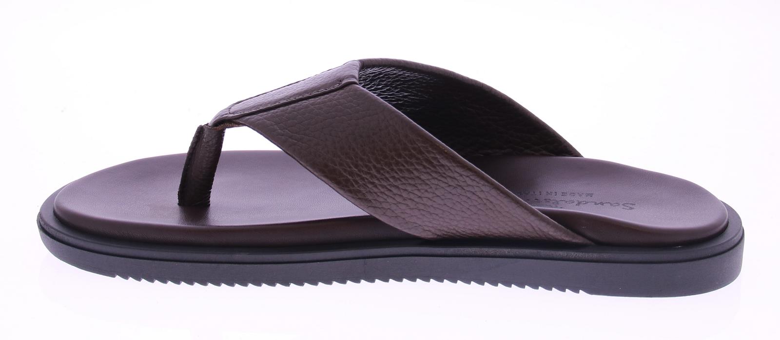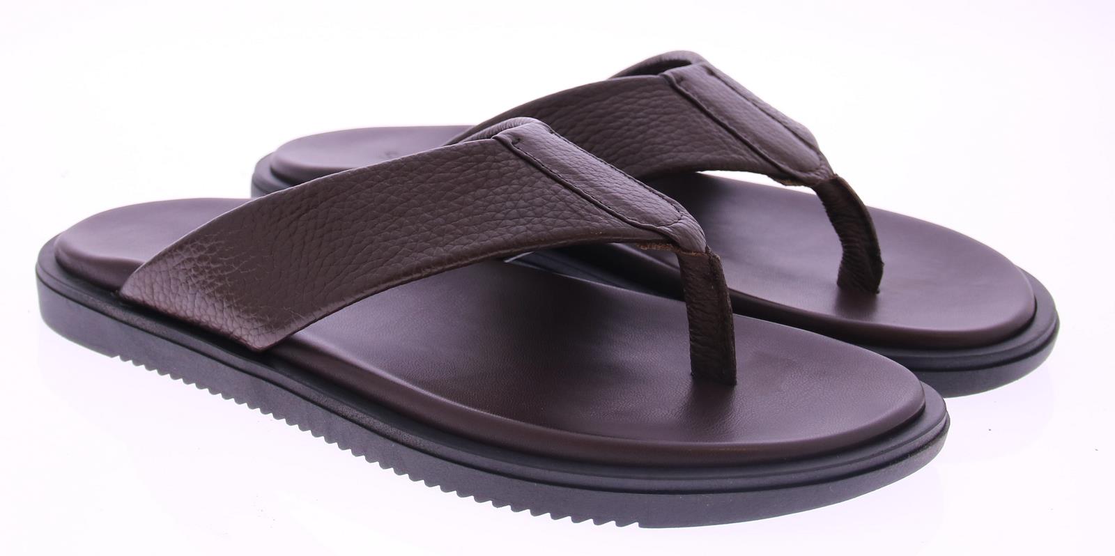 Deze luxe heren teenslipper van The Sandals Factory combineert stijl en comfort. Het bovenwerk en de voering zijn volledig vervaardigd uit hoogwaardig leer, wat zorgt voor een soepele pasvorm en een verfijnde uitstraling. De donkerbruine kleur geeft de slipper een tijdloze en elegante look, terwijl het duurzame rubberen onderwerk zorgt voor extra grip en draagcomfort. Perfect voor zomerse gelegenheden!