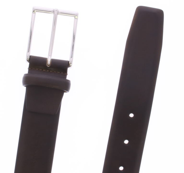 Midden bruine leren heren riem van Santoni. De riem is in te korten aan de gesp kant en heeft een leren voering.