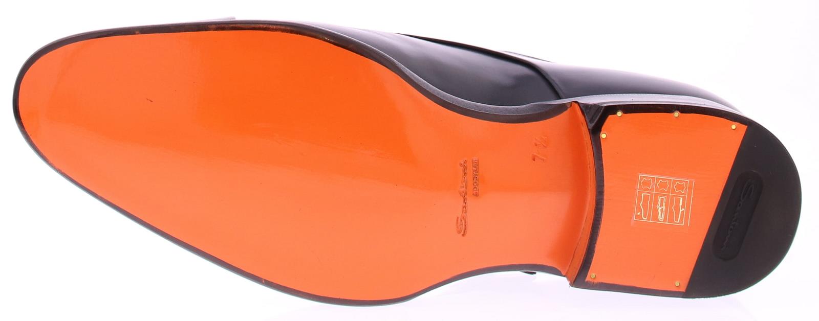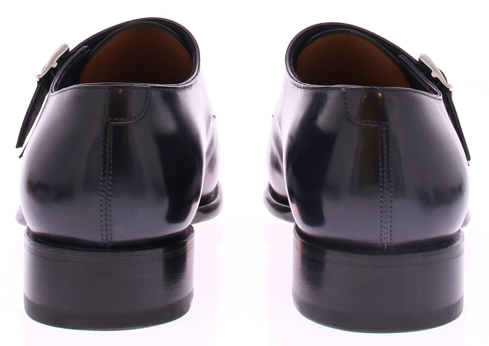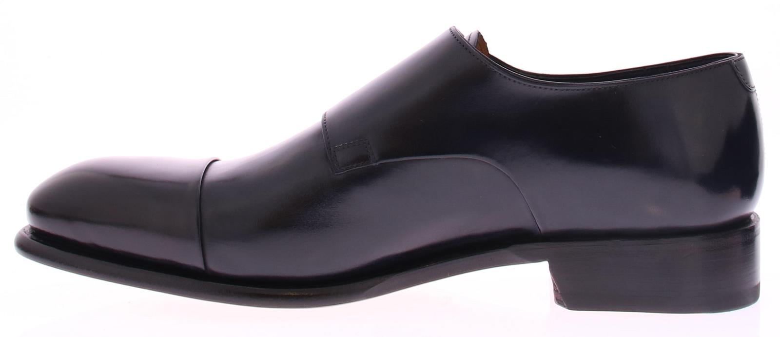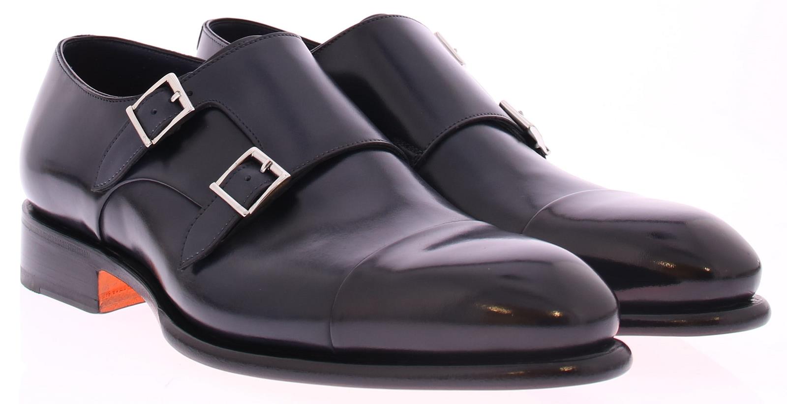 Santoni dubbelgesp schoen op de carter leest, artikel MCCR11652MC1HVVDU59. De kleur is heel diep blauw. Deze signatuur schoen van het merk Santoni is geheel gemaakt van het mooiste kalfsleer verkrijgbaar in de markt en geheel gemaakt in de goodyear maakwijze. De zoolafwerking is zo gedaan dat elke stiknaad is weg gewerkt. Een erg mooi maar tijdrovend proces. De pasvorm van deze schoen is uniek te noemen.