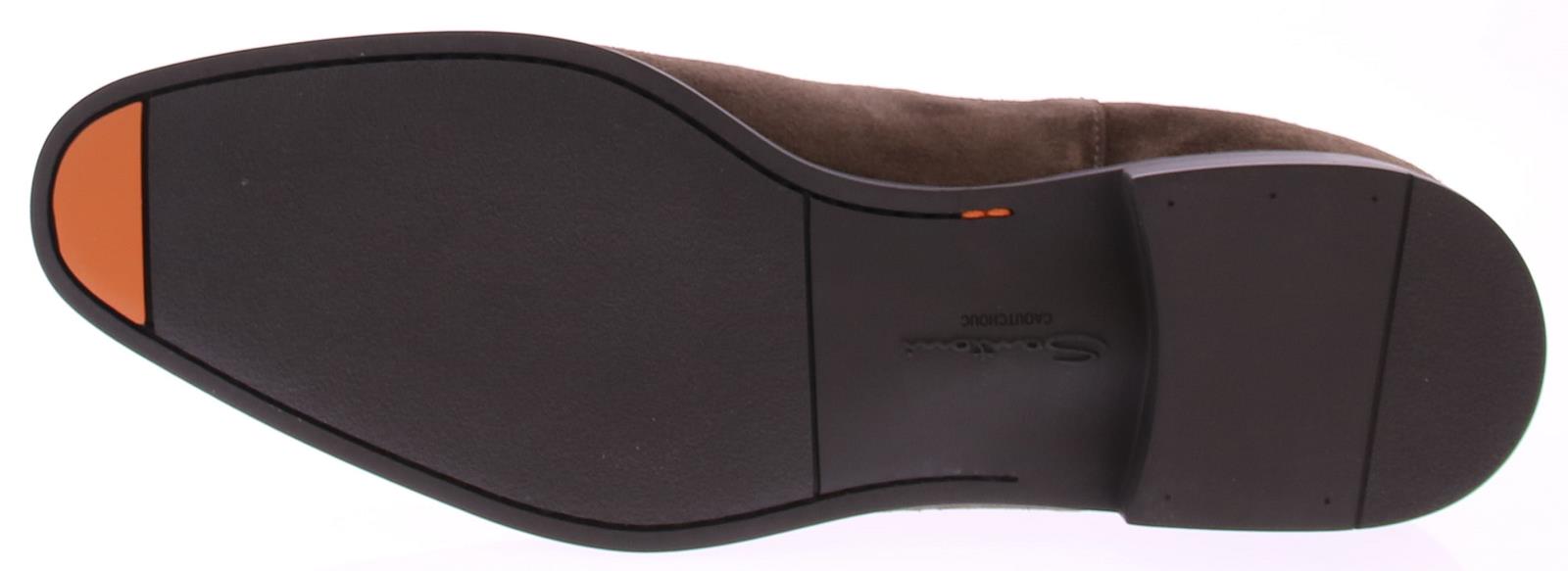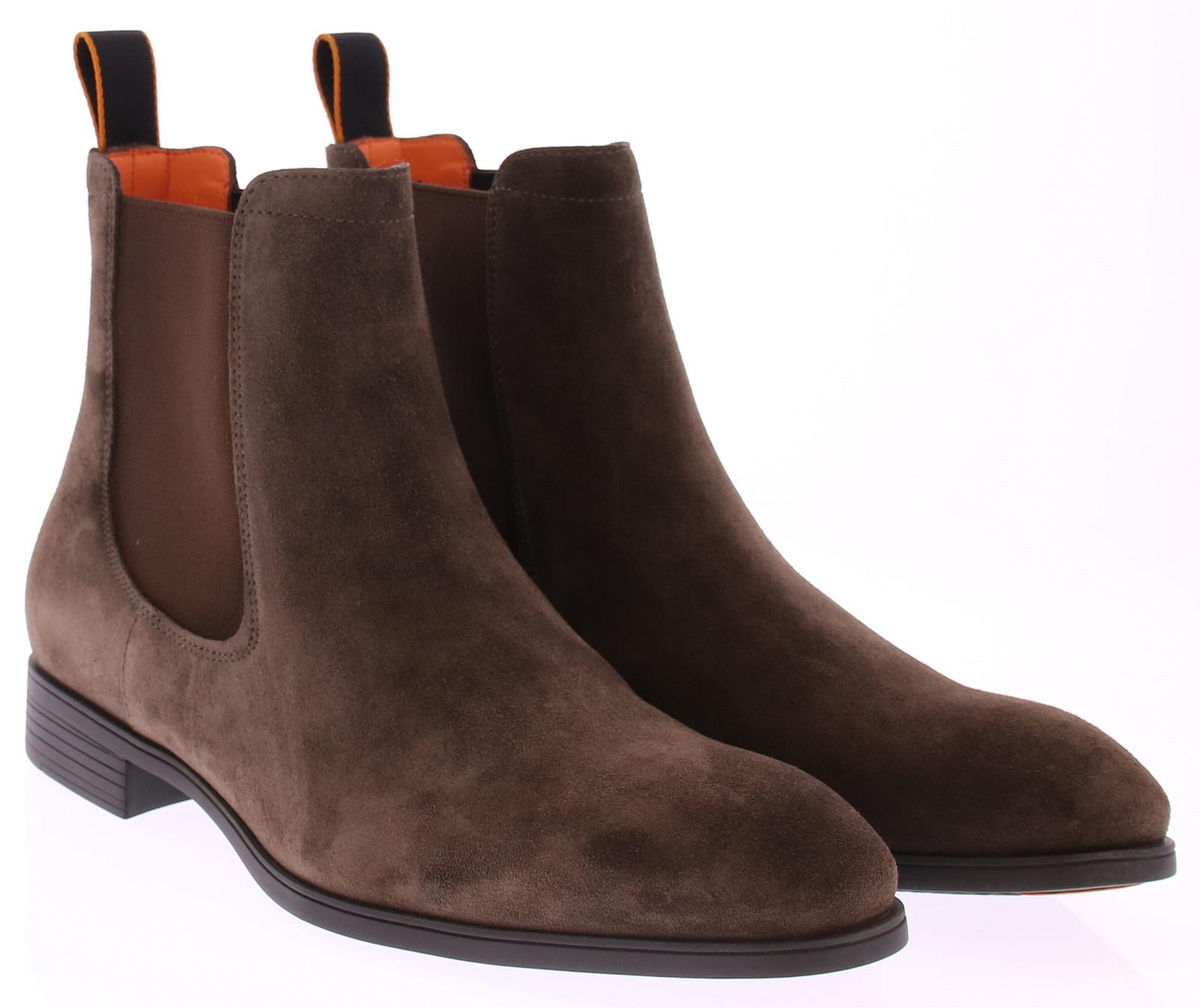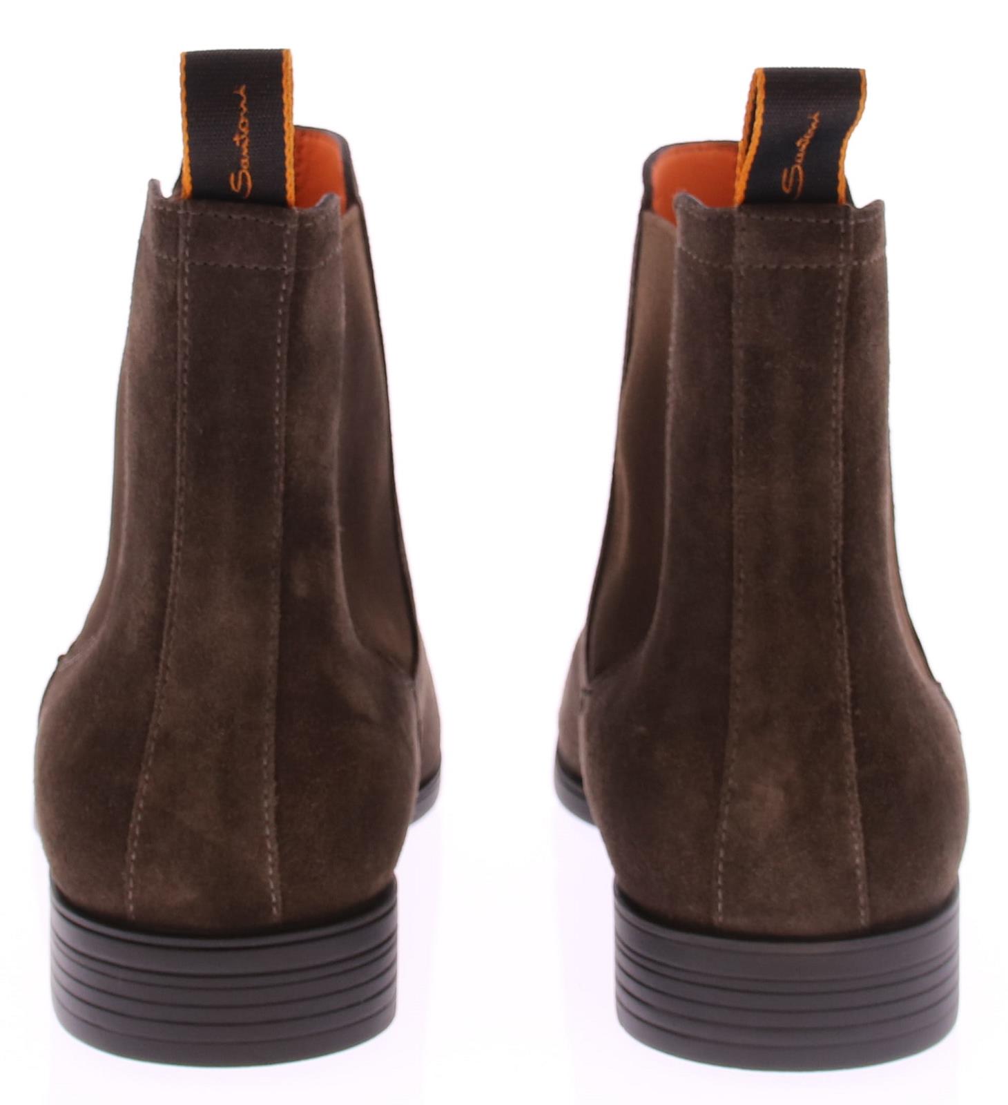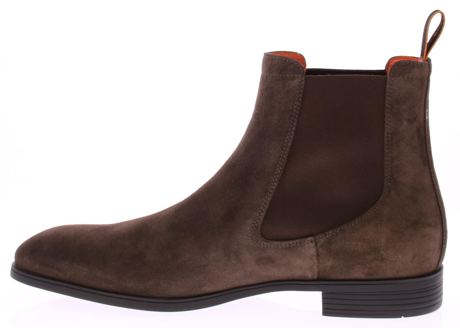 Santoni Chelseaboot in donkerbruin suede uit de gomma lijn. de schoen heeft een rubber zool en is leer gevoerd. artikel MGSI13414SMAISVUT50.