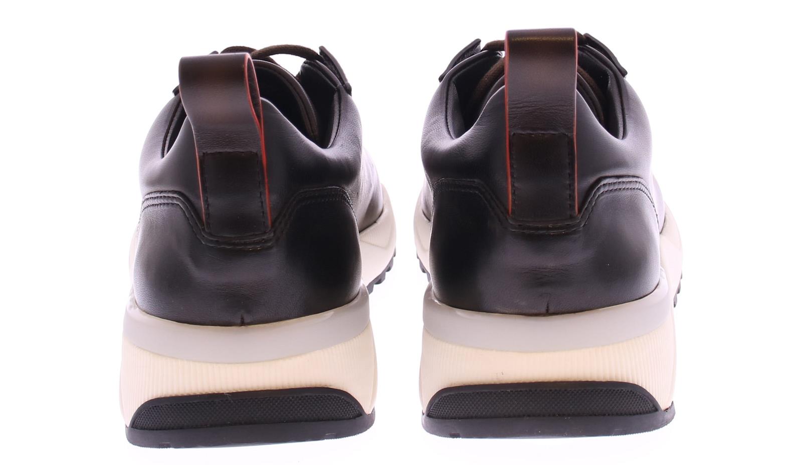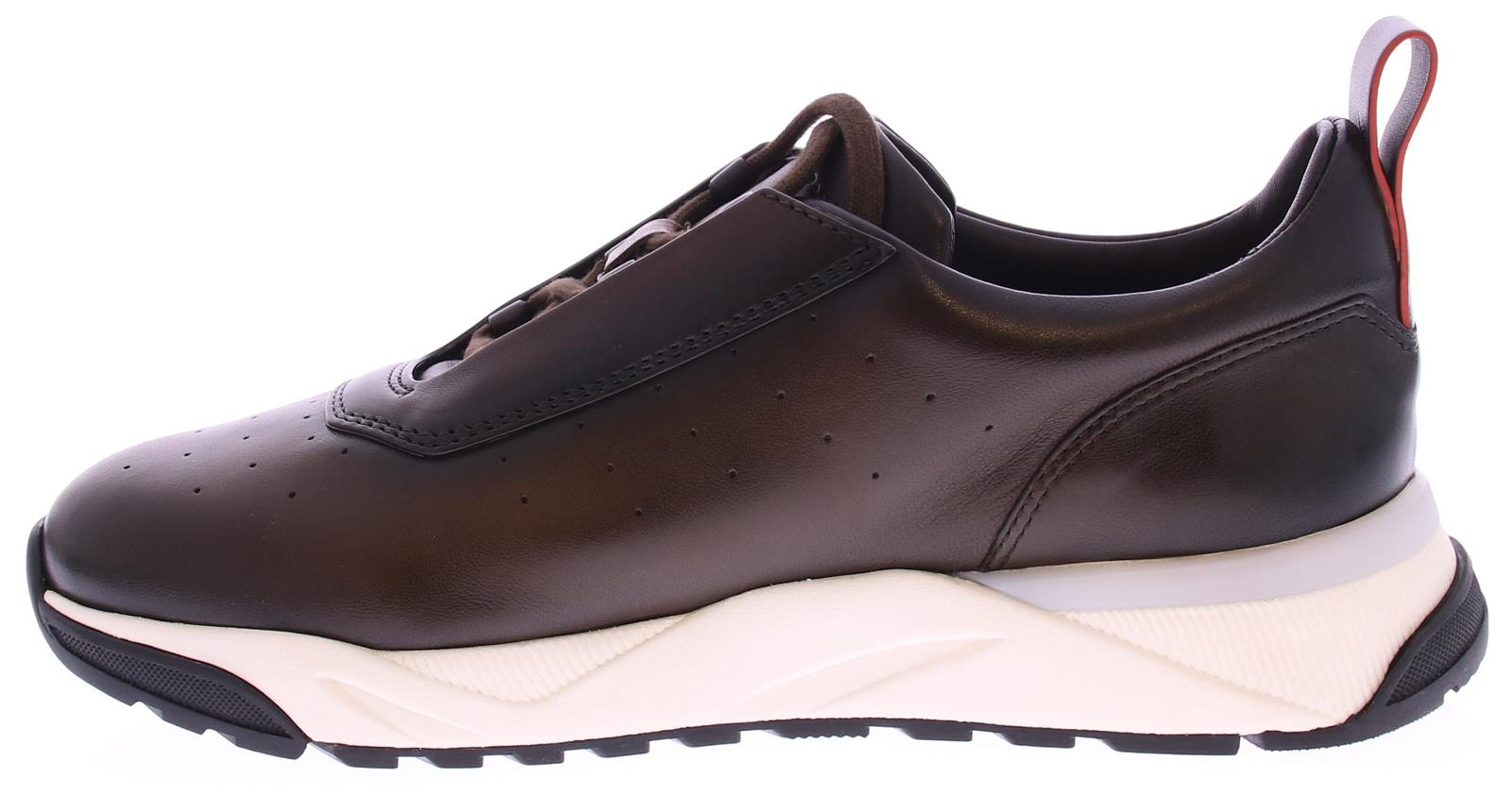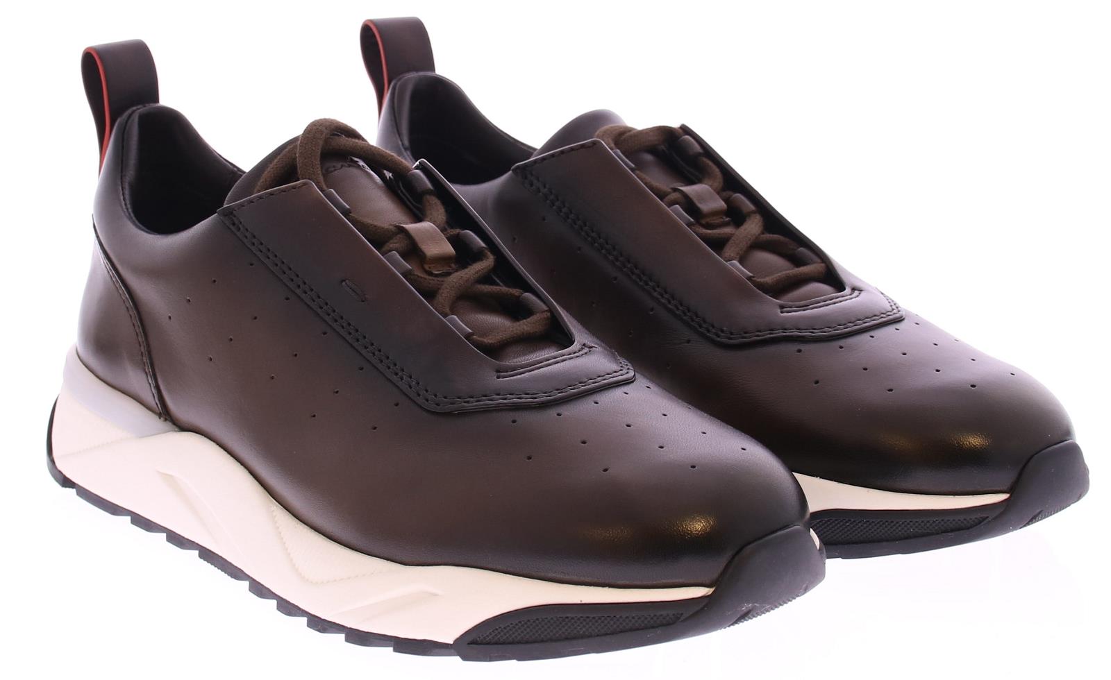 Donkerbruine leren heren sneaker van Santoni. Deze luxe sneakers zijn gemaakt van hoogwaardig leer, waar Santoni om bekend staat. De binnenzool is uitneembaar.
