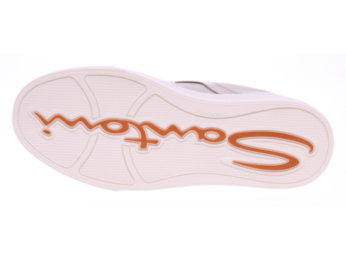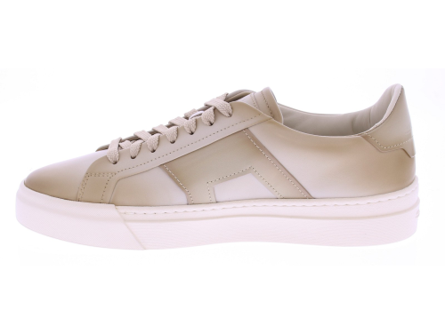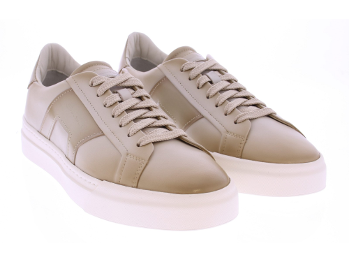 De Santoni artikel 22018 GLORIA DBS is een luxe herensneaker uitgevoerd in roomkleurig, superzacht nappaleer. De voering is volledig van leer en het uitneembare voetbed biedt de mogelijkheid om eigen inlegzolen te gebruiken. De schoen is afgewerkt met een sportieve witte rubberen zool, wat zorgt voor een moderne uitstraling en optimaal draagcomfort.