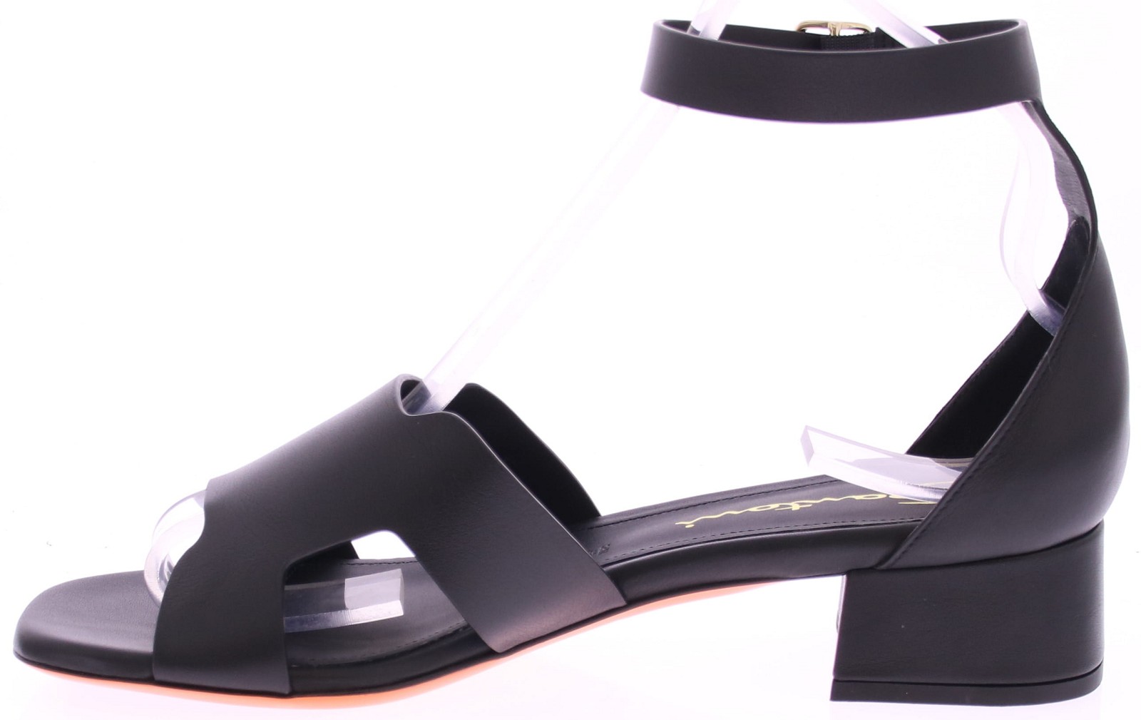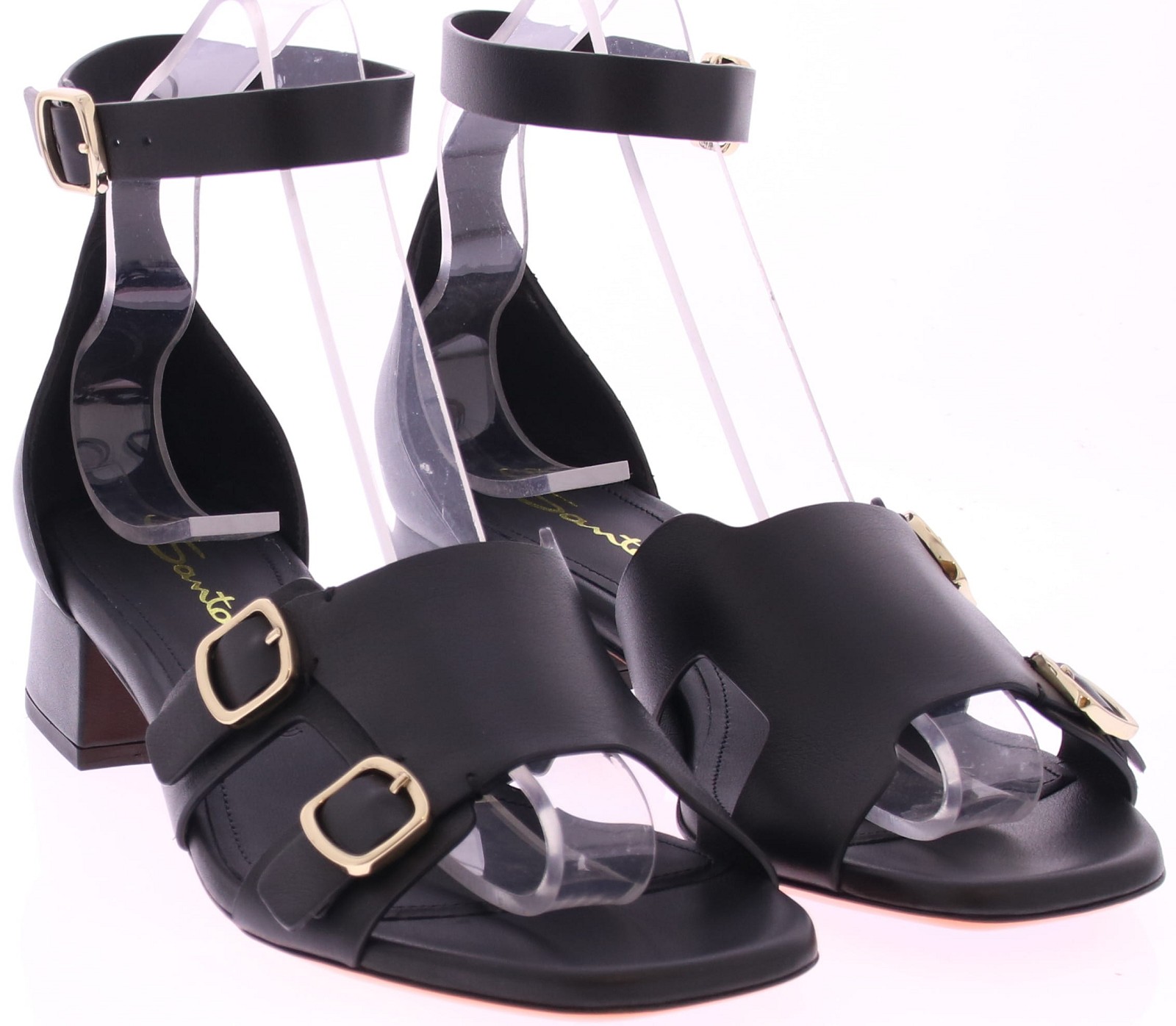Deze elegante Santoni enkelband sandaal voor dames in zwart leer combineert luxe en comfort in een verfijnd ontwerp. Uitgevoerd in zwart leer straalt de schoen klasse uit. Het subtiel afgeronde voorblad is voorzien van de voor Santoni kenmerkende dubbele gespjes, verfijnd afgewerkt met hun subtiele logo. De zilverkleurige enkelgesp zorgt voor een perfecte pasvorm, terwijl de stevige blokhak van 3 cm een comfortabele lift biedt. Een tijdloos en stijlvol design, ideaal voor zowel formele als casual chique gelegenheden.