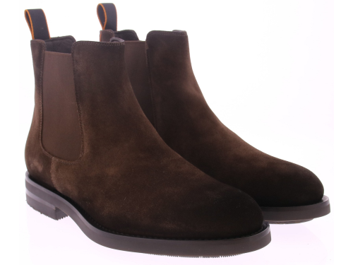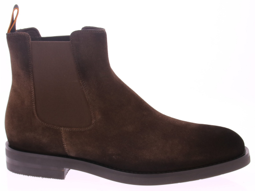 Santoni Chelsea Boot in Bruin Suède met een Natuurlatex Zool is een luxueuze Chelsea boot waarin Italiaans vakmanschap, ultiem comfort en moderne functionaliteit samenkomen. Gemaakt van rijk donkerbruin suède, en voorzien van een verfijnde Goodyear Bologna constructie, biedt deze boot een perfecte pasvorm met de souplesse van een instapper en de stevigheid van een klassieke schoen. De flexibele natuurlatex zool zorgt daarbij voor ongekend loopcomfort.