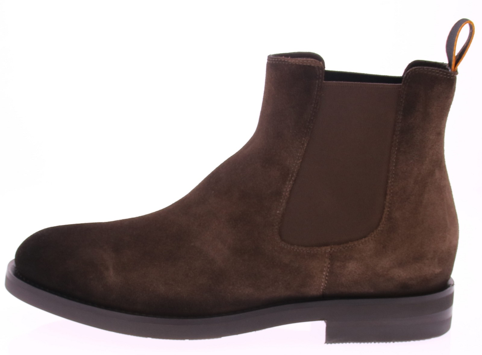 Santoni Chelsea Boot in Bruin Suède met een Natuurlatex Zool is een luxueuze Chelsea boot waarin Italiaans vakmanschap, ultiem comfort en moderne functionaliteit samenkomen. Gemaakt van rijk donkerbruin suède, en voorzien van een verfijnde Goodyear Bologna constructie, biedt deze boot een perfecte pasvorm met de souplesse van een instapper en de stevigheid van een klassieke schoen. De flexibele natuurlatex zool zorgt daarbij voor ongekend loopcomfort.